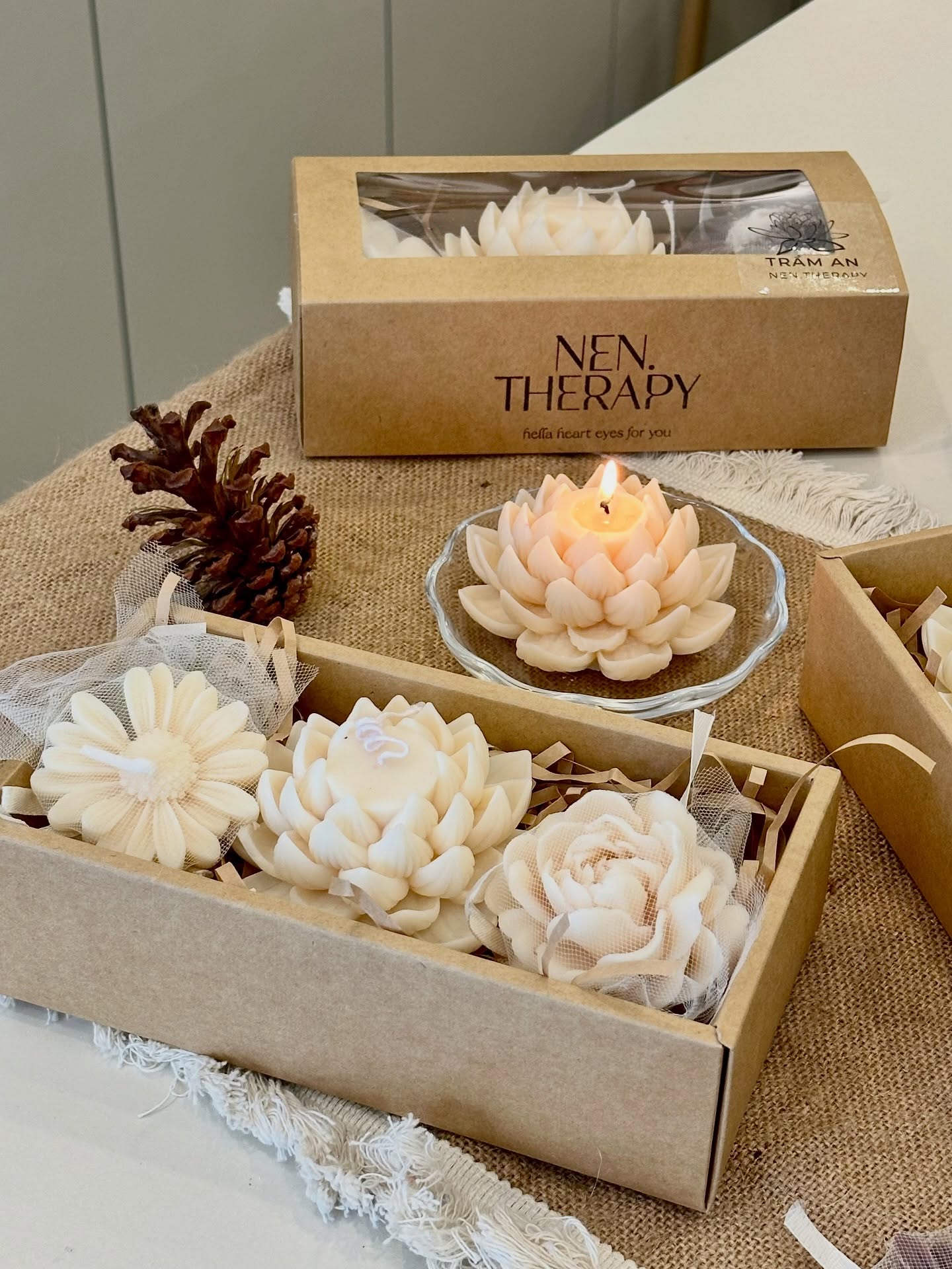 1. Nến thơm tinh dầu và nến bơ sen bách diệp: Ánh sáng ấm áp gọi mời bình an