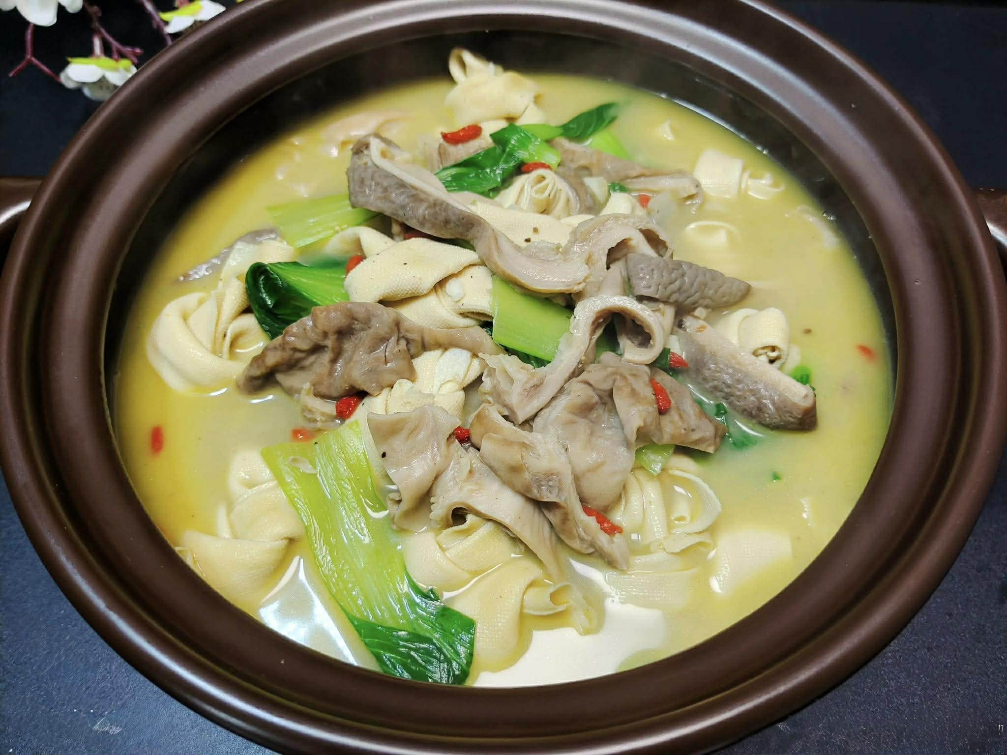Cách làm món canh dạ dày heo với váng đậu cuộn