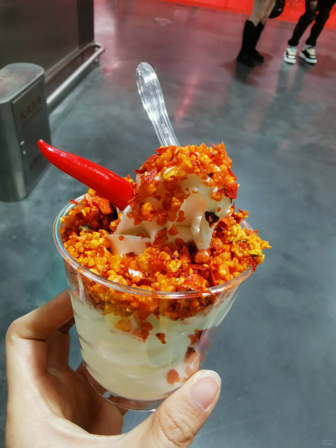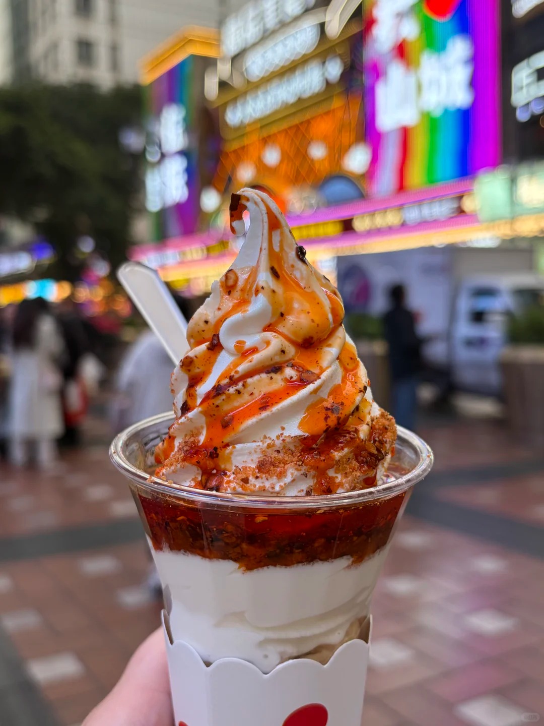 Dù liên tục nhận về vô số rổ gạch đá, ý kiến trái chiều và sự chối từ phũ phàng từ chính những người dân bản địa, nhưng chúng ta không thể phủ nhận một sự thật là kem chan dầu ớt vẫn đang giữ vững ngôi vương là một từ khóa cực hot trên bản đồ du lịch Trùng Khánh, thành công thu hút những đôi chân cuồng đi và những chiếc dạ dày mang dòng máu ưa thích mạo hiểm.