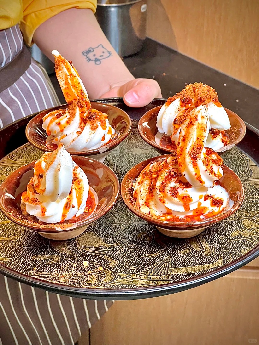 Trải nghiệm ngay từ miếng đầu tiên được miêu tả là một sự bùng nổ hương vị đến mức khiến người ăn phải hoa mắt chóng mặt: Cảm giác lạnh buốt của kem xông thẳng lên não hòa quyện cùng vị ngọt béo ngậy của sữa bò, nhưng chỉ một giây sau đó đã ngay lập tức bị lấn át bởi cái cay xè, tê dại của dầu ớt lan tỏa khắp khoang miệng. Sự phân tầng hương vị này quả thực rất phong phú, phức tạp và đầy mâu thuẫn, vừa cay xé gan ruột lại vừa ngọt ngào, vừa buốt giá lại vừa nóng hừng hực, tạo nên một cuộc rượt đuổi vị giác không có hồi kết.