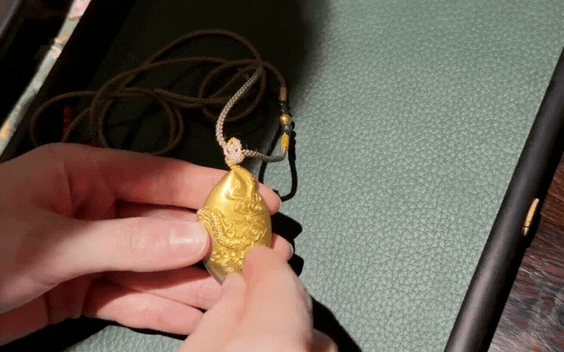 Nếu như chúng ta thường đắn đo tính toán mua vàng sao cho không hao hụt, thì giới tinh hoa lại sẵn sàng chi bộn tiền cho những kỹ thuật siêu phàm như "hoa kim nạm" (chạm khắc ren chỉ vàng). Đào Hỷ Nhi đã không giấu nổi sự say mê khi ướm thử chiếc vòng tay rồng nặng tới 280 gram. Cảm giác trĩu nặng, mỏi tay nhường chỗ cho sự thán phục khi nhìn thật gần, toàn bộ bề mặt chiếc vòng đều được bện từ vô số những sợi chỉ vàng mỏng manh tựa tơ nhện.