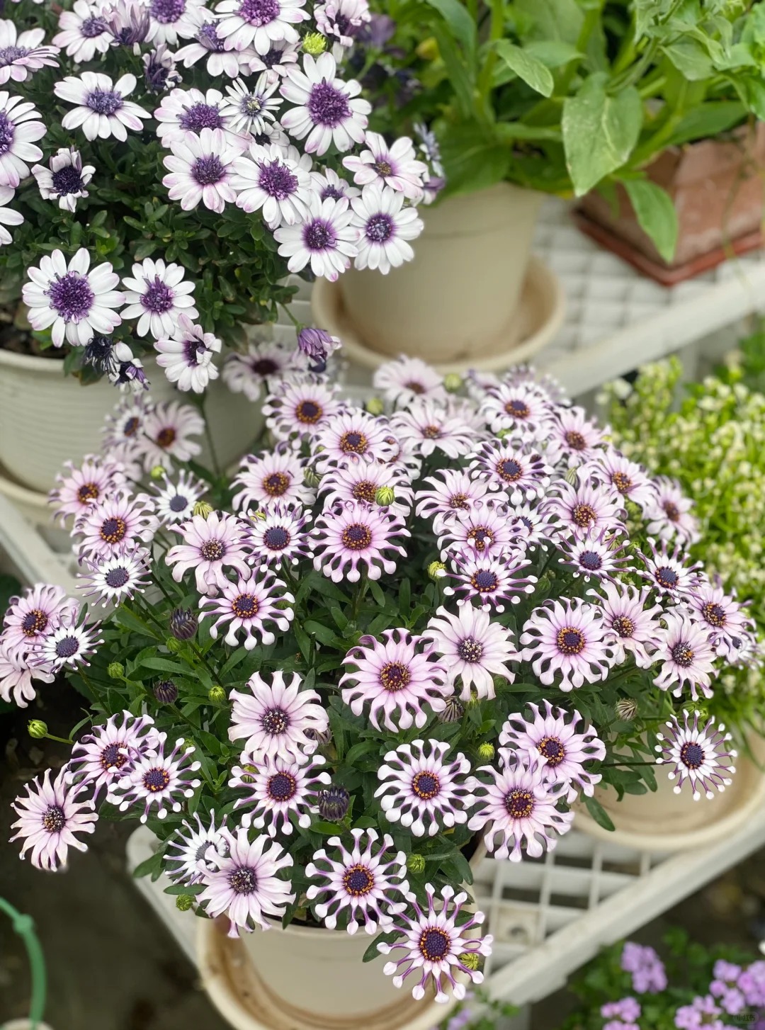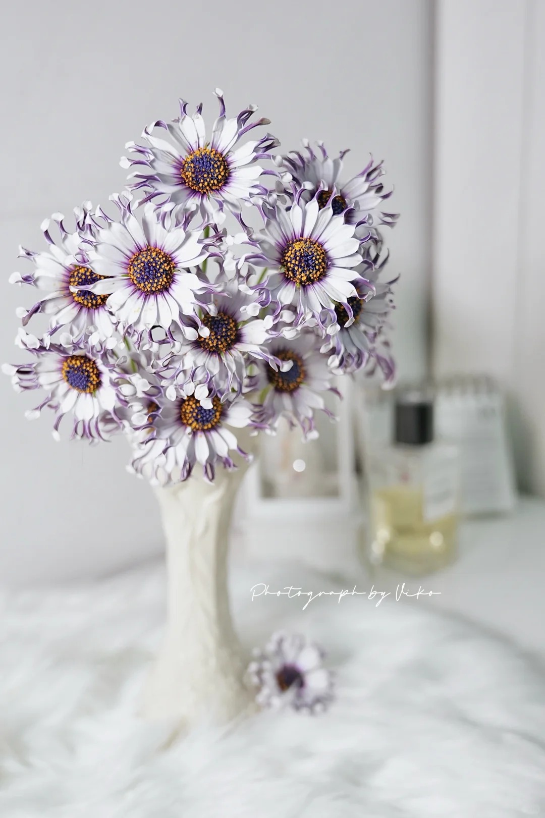 Nhìn lướt qua, lam mục cúc cánh thìa (tên khoa học là Dimorphotheca ecklonis) mang một diện mạo đầy tính viễn tưởng và thách thức thị giác người nhìn. Nó không có những cánh hoa mỏng manh bung nở mềm mại như cúc họa mi, cũng chẳng xếp lớp kiêu kỳ như thược dược. Thay vào đó, mỗi cánh hoa mọc ra lại thon dài, cuộn tròn lấy nhau ở phần gốc và chỉ bung nở một chút ở phần đầu, trông y hệt như những chiếc thìa nhỏ xíu màu trắng muốt được xếp đặt tỉ mỉ, mặt dưới lại ánh lên sắc tím mộng mơ.