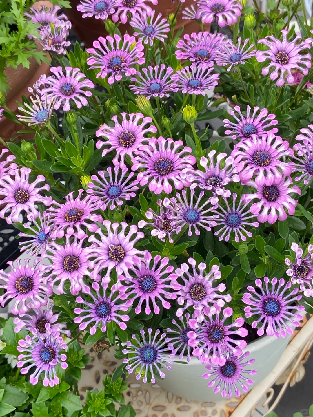 Nếu bạn đang tìm kiếm một loài hoa quen thuộc, an toàn và rực rỡ chói lòa để chưng trong nhà những ngày Tết sắp tới, thì cúc mắt xanh cánh thìa chắc chắn không phải là lựa chọn dành cho bạn. Loài hoa này mang một vẻ đẹp dị biệt đến mức bị gọi là "hoa người ngoài hành tinh", thậm chí nhiều chị em vừa nhìn thấy đã lắc đầu e ngại vì trông hình dáng nó cứ rờn rợn giống hệt... một con virus phóng to.