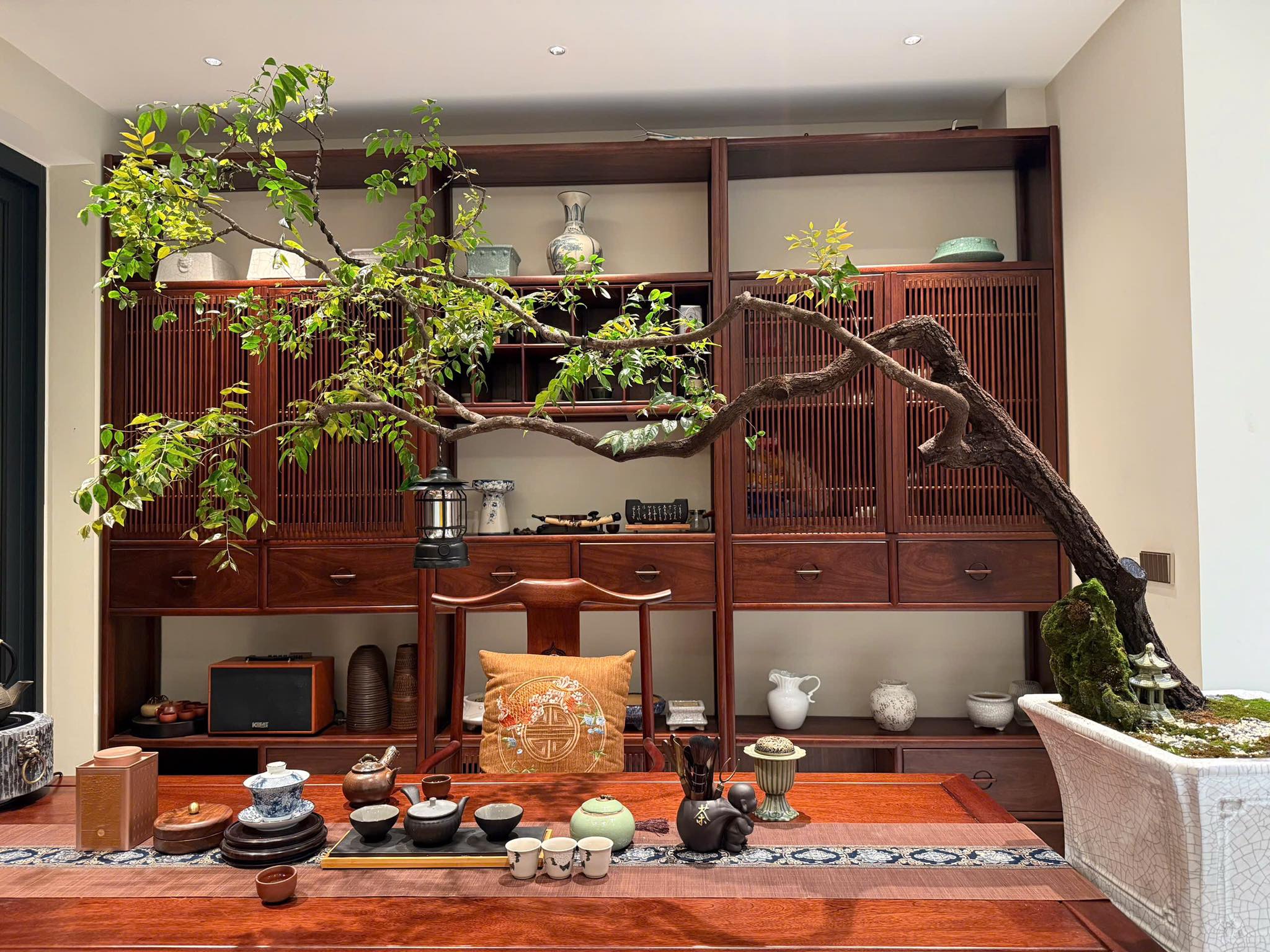 Khi được bứng về, cắt tỉa sơ qua và đặt vào những chiếc chậu gốm mộc, gốm tử sa, cây muội hồng bỗng biến thành một tác phẩm nghệ thuật bonsai không đụng hàng. Đặt cạnh ấm trà bốc khói nghi ngút, ánh sáng vàng ấm áp hắt xuống, chậu cây mang cả một hơi thở của đại ngàn hoang sơ vào tận phòng khách của giới thị thành.