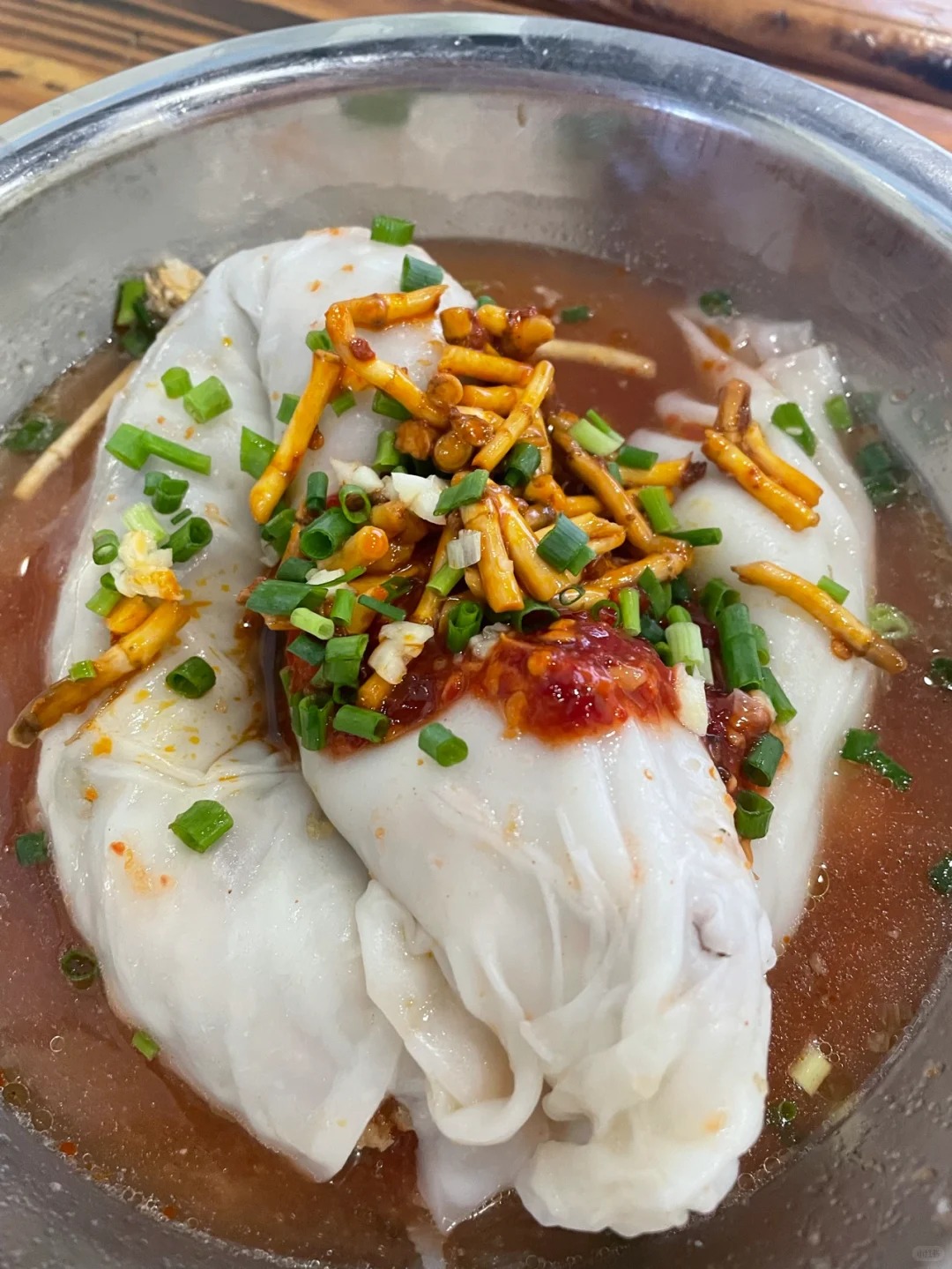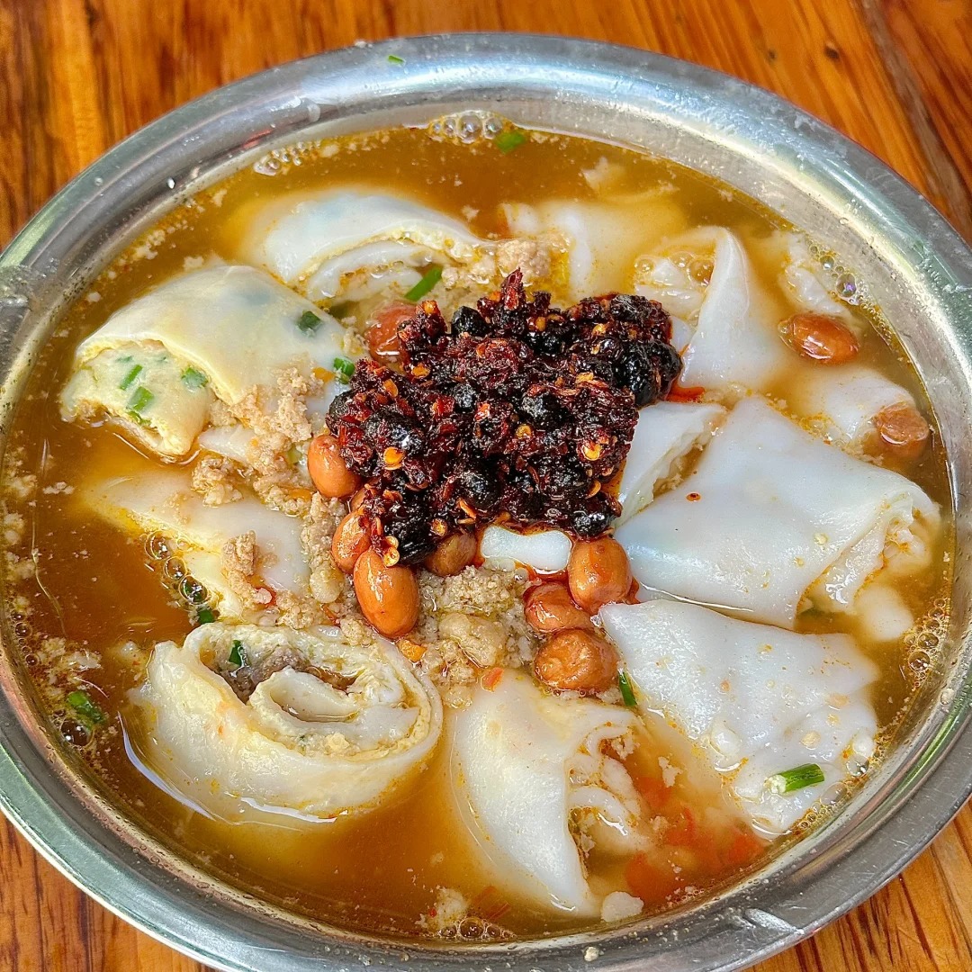 Buổi sáng ở vùng cao thường bắt đầu bằng lớp sương mù lảng bảng và cái lạnh ngòn ngọt. Lúc này, chẳng có gì sưởi ấm dạ dày hoàn hảo hơn một đĩa bánh cuốn nóng hổi (người địa phương gọi là bánh cuốn Kim Thành Giang). Nếu bánh cuốn Phủ Lý hay Thanh Trì của Việt Nam mình gây thương nhớ bởi thứ nước mắm chua ngọt tinh tế và hành phi thơm lừng, thì bánh cuốn nơi đây lại cuốn hút kiểu khác.