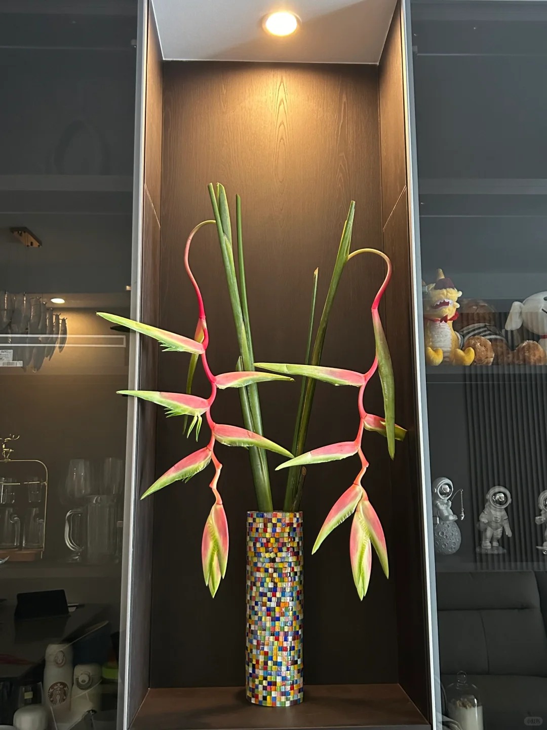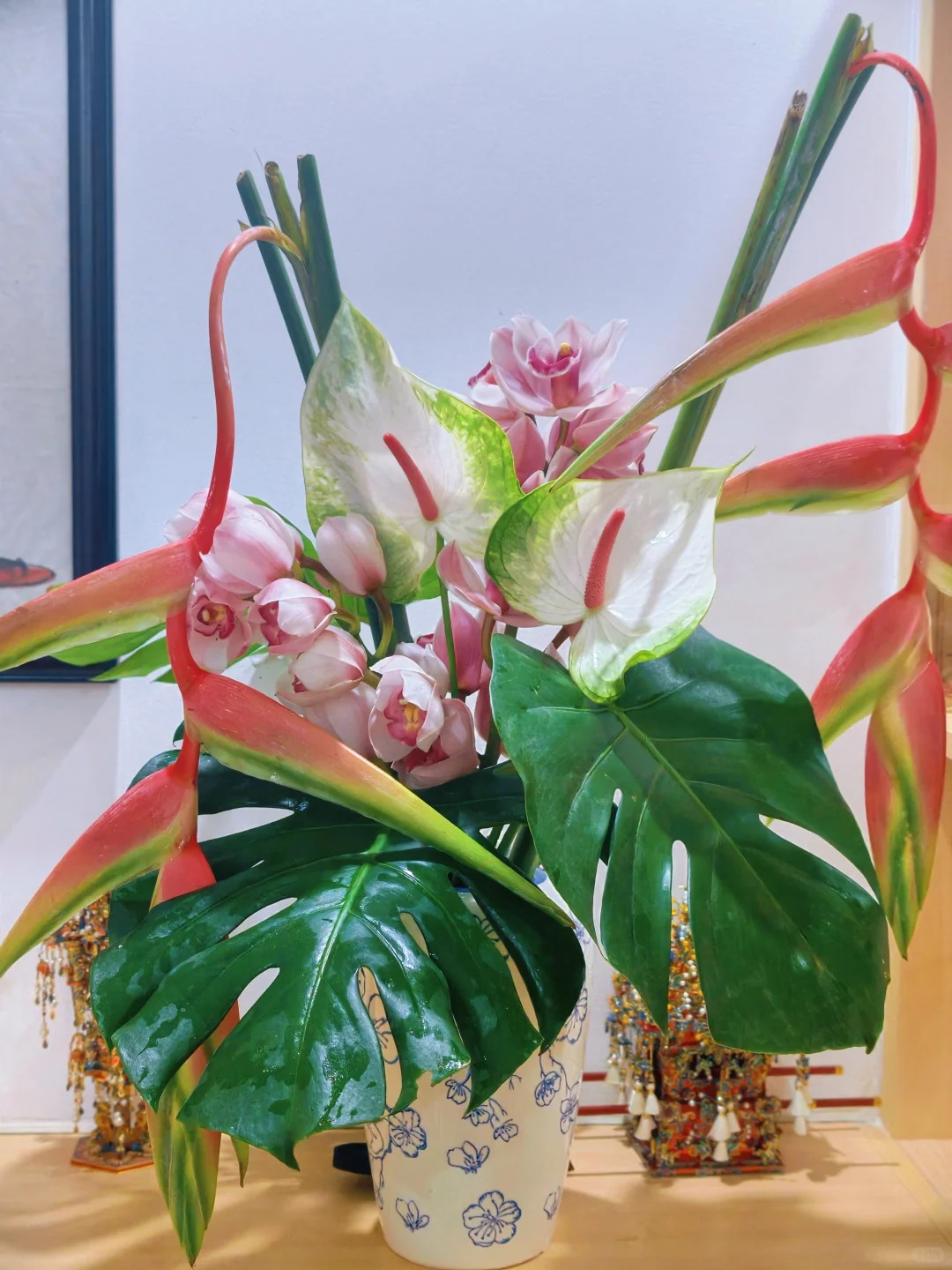 - Công thức mix match: Đừng cắm thiên điểu rủ một mình, hãy kết hợp nó với những loại hoa cỏ có độ bay bổng, lơ thơ như cỏ đồng tiền, dền rủ, hoặc những lá môn sặc sỡ để tạo ra một góc "rừng nhiệt đới" thu nhỏ ngay trong nhà.