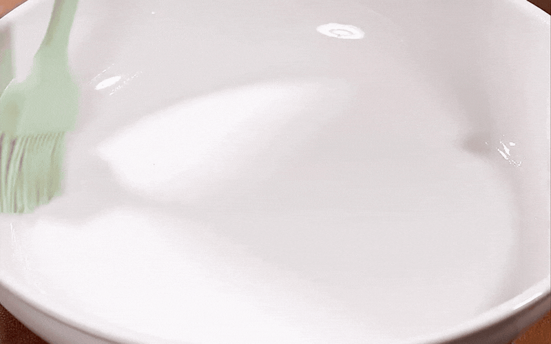 Chuẩn bị một chiếc đĩa sứ sâu lòng (chịu được nhiệt độ cao). Dùng cọ quét một lớp dầu ăn thật mỏng dưới đáy đĩa để thịt không bị dính.