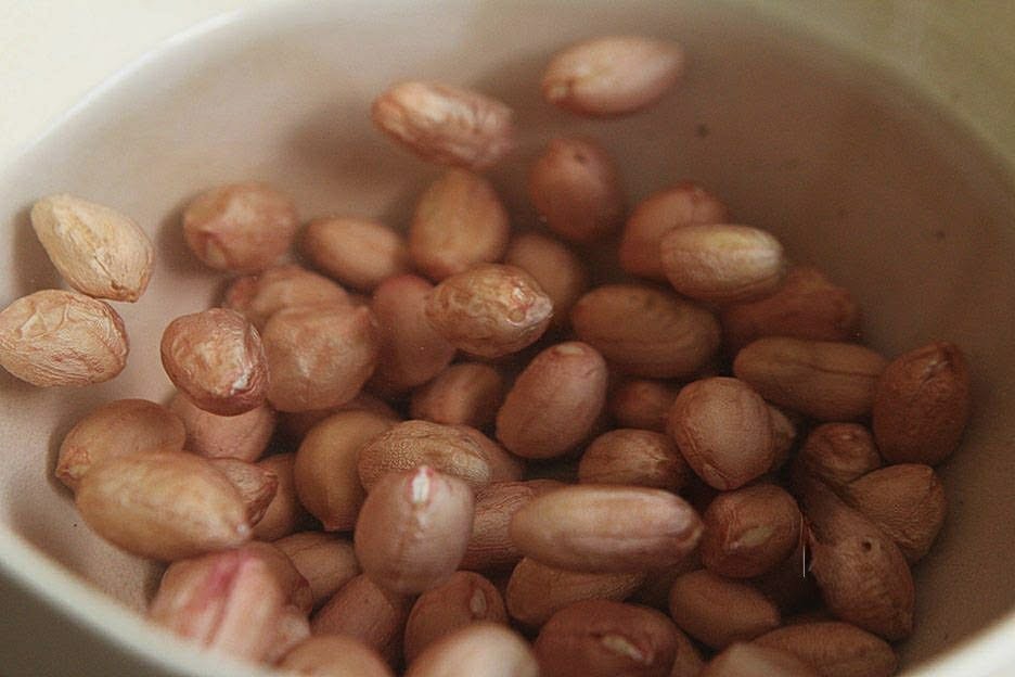 Bước 3: Sau đó cho đậu phộng đã ngâm vào và tiếp tục xào một lúc. Đổ lượng nước nóng vào sao cho ngập các nguyên liệu và đun sôi trên lửa lớn. Sau đó giảm lửa xuống nhỏ và ninh khoảng 45 phút. Mở nắp, nếm thử và nêm muối cùng bột nêm gà cho vừa ăn. Khi nước sốt đã sánh lại, tắt bếp và dọn ra ăn.