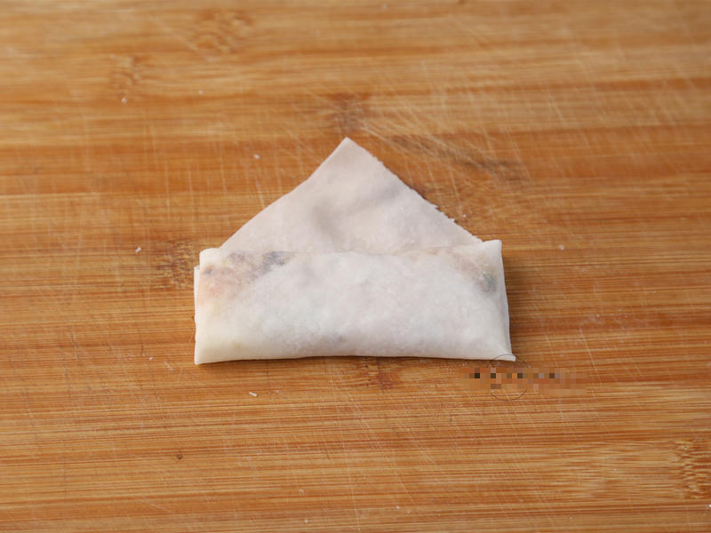 Bước 2: Trải bánh đa nem lên mặt phẳng sau đó cho khoảng 2 muỗng nhân thịt heo và măng vào, dàn đều ở giữa vỏ bánh đa. Sau đó bạn cuộn lại rồi gập hai bên cạnh bánh đa nem vào trong. Tiếp tục cuộn chặt cho đến khi vỏ bánh đa nem gói toàn bộ phần nhân. Làm lần lượt cho đến khi hết nguyên liệu.
