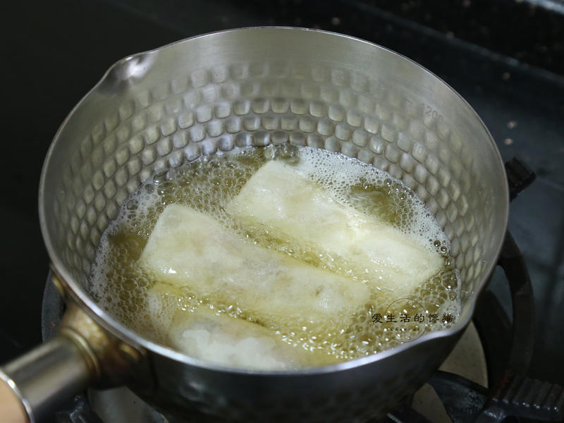 Bước 3: Đun nóng dầu trong chảo. Khi dầu nóng cho nem cuốn nấm hương, măng và thịt heo vào chiên trên lửa nhỏ cho đến khi vàng nâu. Sau khi chiên xong bạn vớt ra, để vào giấy thấm dầu trước khi xếp lên đĩa và thưởng thức nóng.
