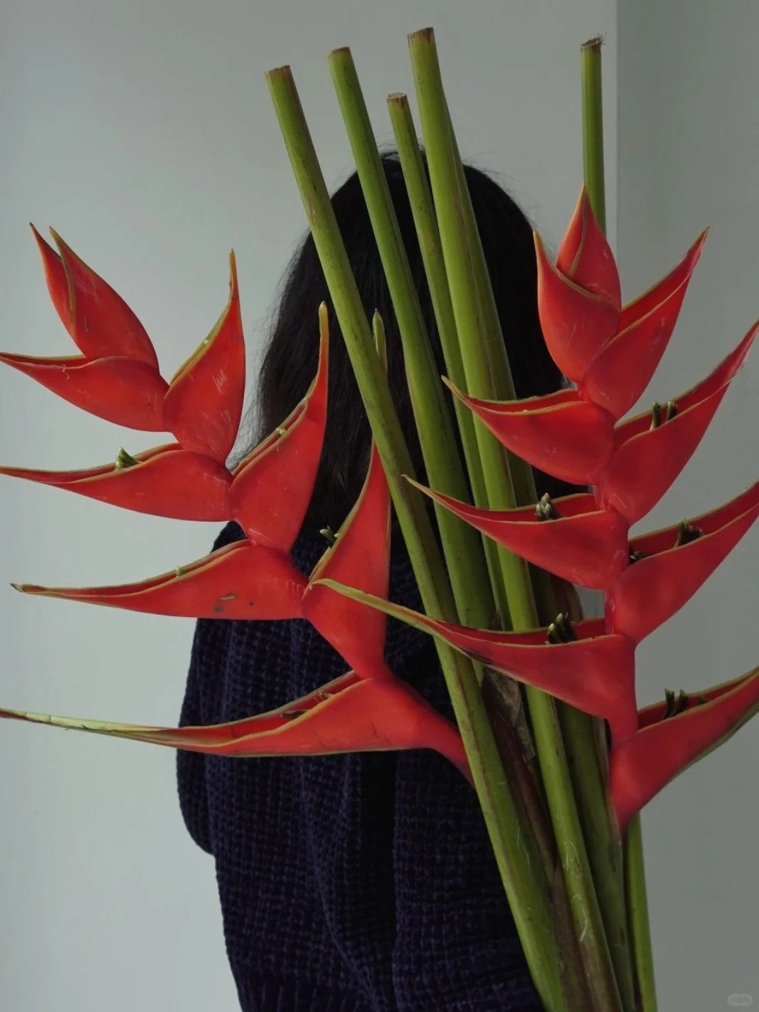 Chỉ cần 3 đến 5 cành chuối én đỏ, cắm thả tự nhiên vào bình, độ cao thấp so le nhau là bạn đã có ngay một tác phẩm nghệ thuật. Nếu muốn cầu kỳ hơn cho mâm hoa Tết, hãy thử kết hợp chuối én đỏ với vài cành lá thiên điểu (Bird of Paradise leaves) xanh mướt bản to để tạo sự tương phản màu sắc. Hoặc "mix" cùng đào đông đỏ (Winterberry) và một chút lá tùng thơm để tạo nên một bình hoa "tone-sur-tone" đỏ rực, vừa hiện đại lại vừa đậm chất Tết.