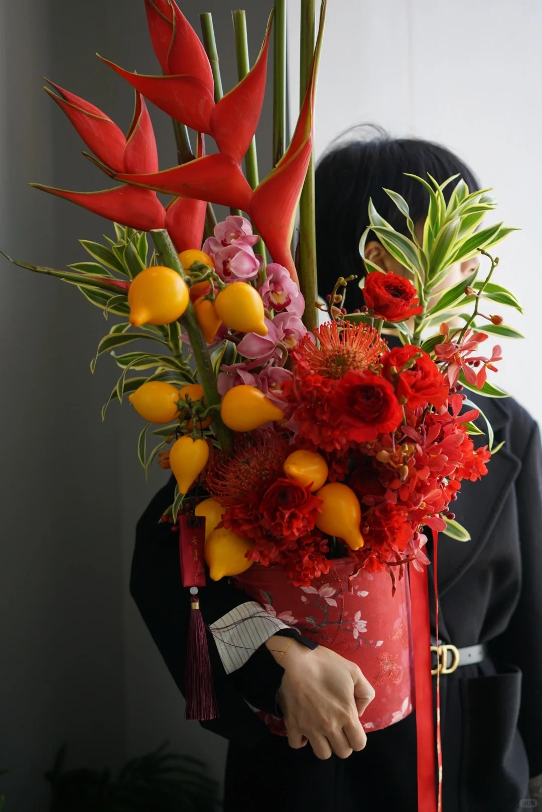 Thậm chí, sự kết hợp giữa nét cứng cáp của chuối én đỏ và vẻ tròn đầy viên mãn của cúc mẫu đơn cũng là một gợi ý tuyệt vời cho sự giao thoa giữa cương và nhu, mang lại sự cân bằng cho không gian sống.