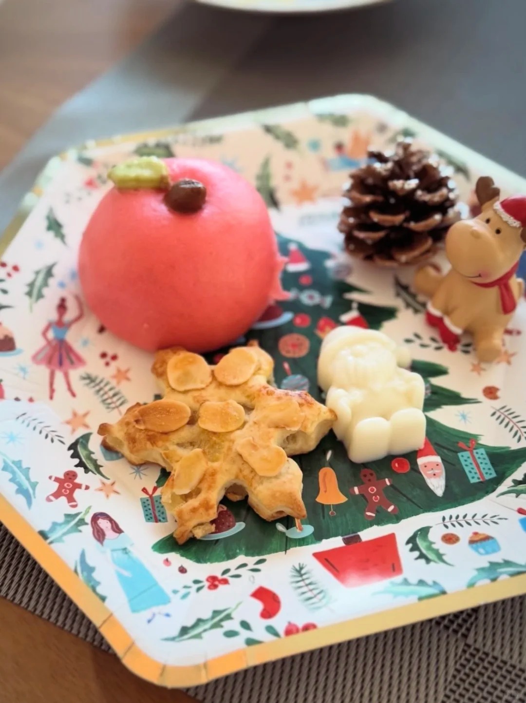 Trên bàn tiệc trà chiều, cư dân mạng tinh ý phát hiện ra những chiếc bánh quy nướng hình thù ngộ nghĩnh và đĩa táo Giáng sinh dễ thương. Chi tiết nhỏ này ngầm tiết lộ rằng chuyến đi này có thể còn có sự góp mặt của cô con gái nhỏ. Hình ảnh người vợ, người mẹ chu toàn, vừa lo cho chồng, vừa chăm cho con nơi đất khách quê người khiến hình ảnh Chương Trạch Thiên càng thêm phần hoàn hảo.