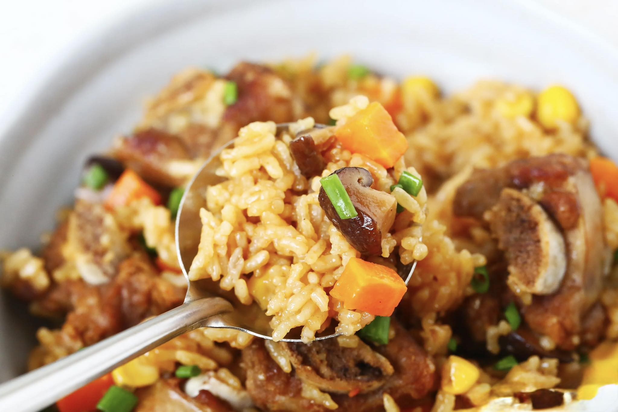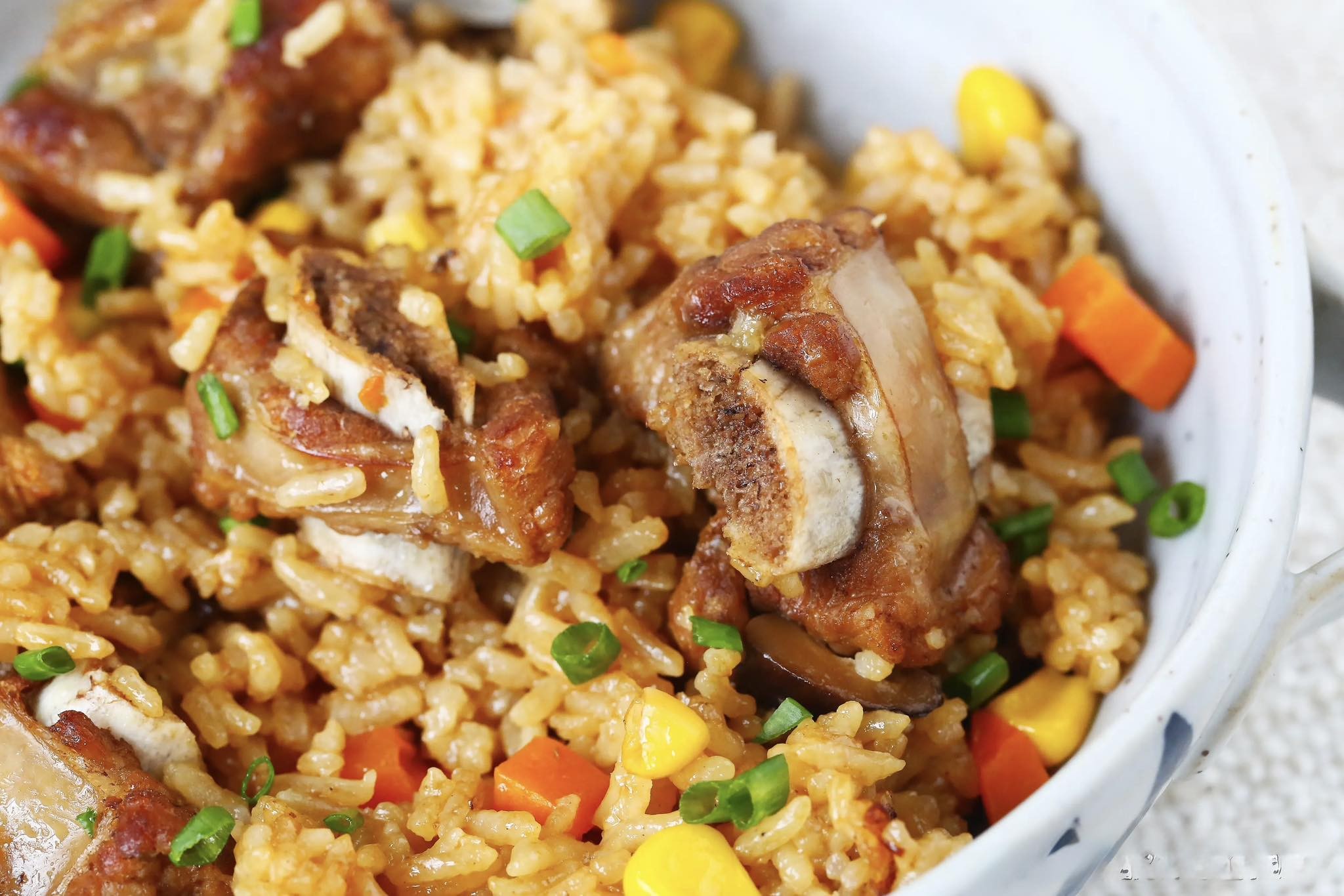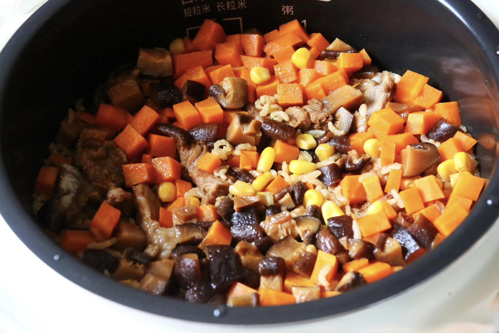 Sườn non luôn là một nguyên liệu được nhiều người yêu thích và không thể thiếu trên bàn ăn. Với phần thịt chắc, đậm đà hương vị kết hợp với vị ngon đặc trưng của xương, tạo nên món ăn ngon miệng phù hợp với mọi lứa tuổi. Sau quá trình ướp đơn giản, vị mặn và ngậy của nước tương, vị ngọt của dầu hào và hương thơm của bột ngũ vị hương thấm đẫm vào thịt, khử mùi hôi và để lại hương thơm dịu nhẹ, đậm đà của sườn. Rau củ ăn kèm càng làm cho món cơm thêm phần sống động: Nấm hương căng mọng và chắc, mang hương thơm tự nhiên của nấm rừng; cà rốt sau khi nấu chín trở nên mềm và ngọt; ngô căng mọng, ngọt ngào, thêm chút vị ngọt tự nhiên cho cơm. Những nguyên liệu bình thường này, không hề đắt tiền, lại sở hữu hương vị đích thực nhất, hòa quyện hoàn hảo với sườn non và cơm, đáp ứng khẩu vị của cả gia đình.