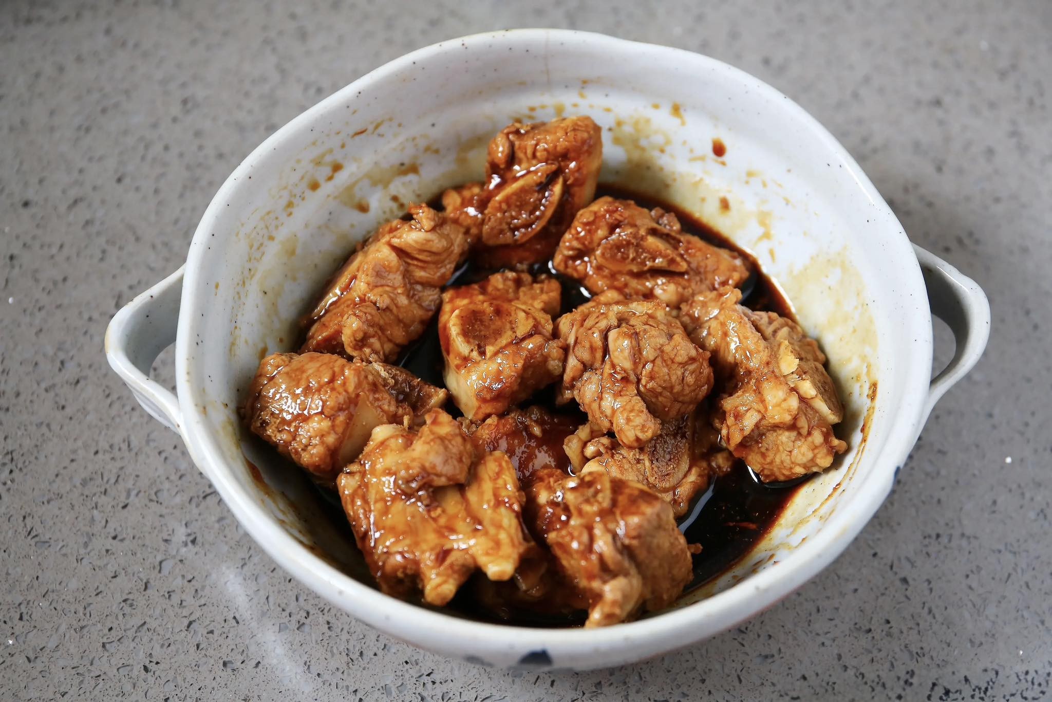 Nguyên liệu gia vị: 2 muỗng canh nước tương, 2 muỗng cà phê nước tương đen, 1 muỗng canh rượu nấu ăn, 1 muỗng canh dầu hào, 2 muỗng cà phê đường, 1 muỗng cà phê bột ngũ vị hương.