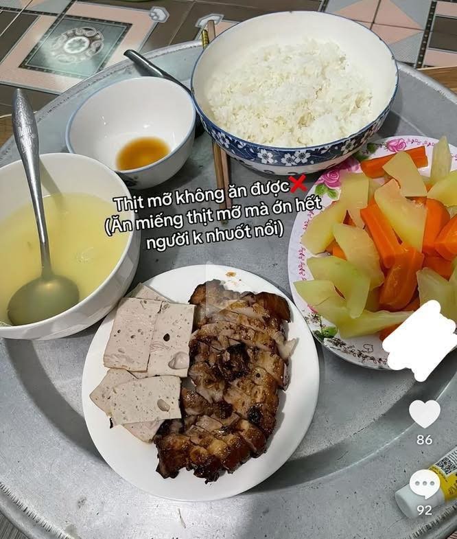 Thoạt nhìn, đây là bữa ăn không quá cầu kỳ, nhưng đủ đầy và có vẻ được chuẩn bị khá cẩn thận. Tuy nhiên, khi các khung hình tiếp theo xuất hiện, người xem bắt đầu hiểu vì sao đoạn clip này lại gây tranh cãi.