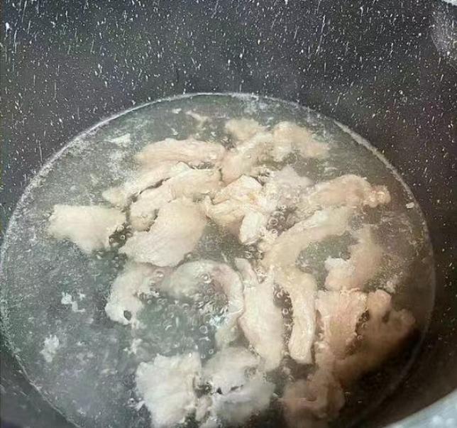 Bước 1: Rửa sạch và cắt rau má thành từng khúc. Thịt nạc rửa sạch, thấm khô nước sau đó thái thành các lát mỏng. Đun nóng một chút dầu trong nồi, thêm thịt vào xào cho đến khi đổi màu. Sau đó thêm nước vừa đủ rồi đun nhỏ lửa trong 20 phút.