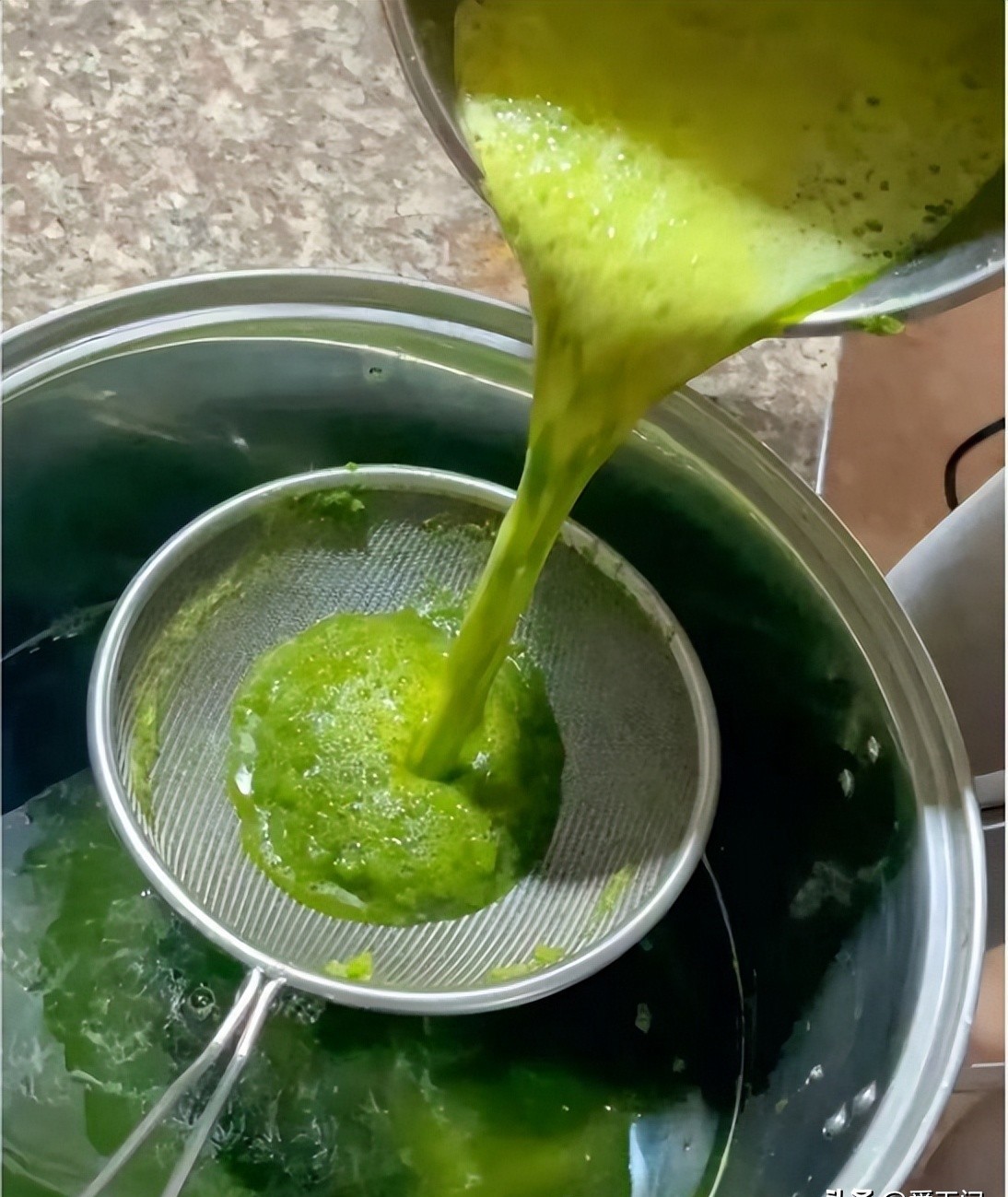 Bước 2: Sau đó đậy nắp máy xay sinh tố lại rồi khởi động và xay mịn. Sau đó lọc qua rây để thu được nước ép rau má mịn. Bạn có thể uống trực tiếp hoặc thêm một lượng đường phèn thích hợp và khuấy đều để có vị ngon hơn.