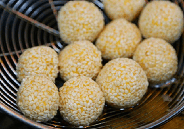 Những viên bánh tròn vo lăn qua lớp vừng trắng, chiên phồng lên trông vô cùng vui mắt. Vỏ ngoài giòn tan, bên trong là lớp bột nếp dẻo quánh bao bọc lấy nhân đường hoặc đậu đỏ ngọt lịm. Bánh Hoan Hỷ ngon nhất là khi vừa vớt ra khỏi chảo dầu, nóng hổi, cắn vào nghe rộp rộp, kéo sợi dẻo thơm. Một chiếc bánh nhỏ xinh nhưng gói ghém trọn vẹn sự tinh tế và ngọt ngào của ẩm thực Vũ Hán.
