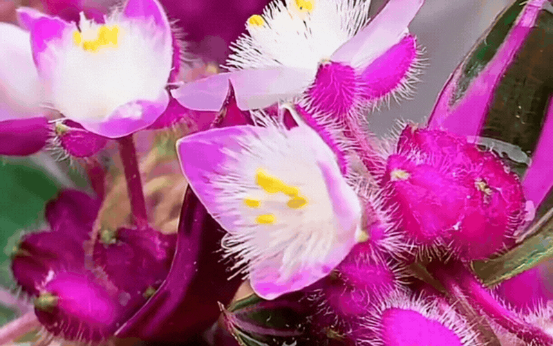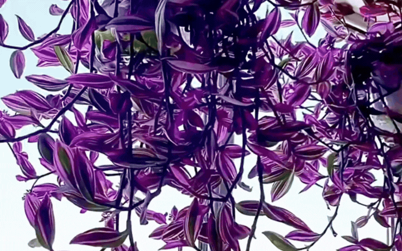 Không phải tự nhiên mà thài lài cẩm thạch được ưu ái gọi là "Hermes" của giới sinh vật cảnh. Sức hút lớn nhất của loại cây này nằm ở bộ lá vô cùng độc đáo. Không mang một màu xanh đơn điệu, lá của thài lài cẩm thạch là sự pha trộn tinh tế giữa các dải màu tím, hồng, trắng và xanh lục, mặt dưới lá thường phủ một lớp màu tím đậm rực rỡ. Khi được treo trên cao, những nhánh cây buông rủ xuống tựa như một dải cầu vồng vắt ngang ban công, thỉnh thoảng điểm xuyết những bông hoa nhỏ xinh chúm chím.