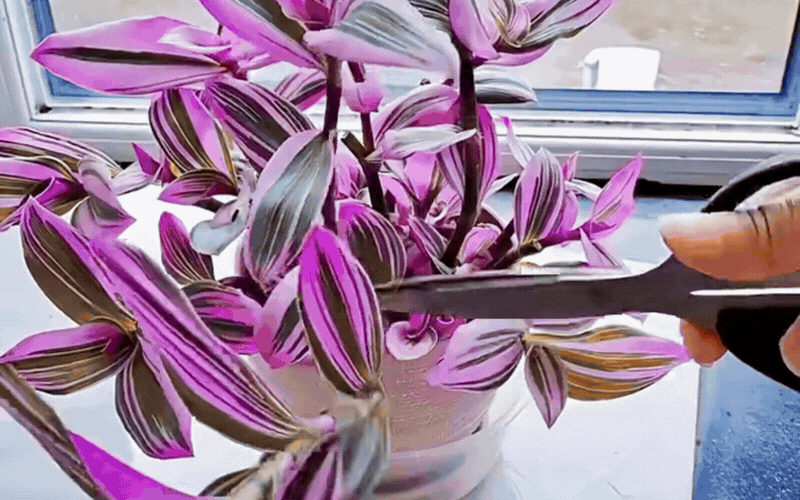 Đừng ngại cầm kéo lên! Thài lài cẩm thạch là loài cây càng cắt tỉa càng đẻ nhiều nhánh mới. Khi thấy thân cây mọc quá dài, bạn hãy mạnh dạn cắt bớt để kích thích cây đâm chồi từ gốc, giúp chậu cây tròn trịa và dày đặc hơn.
