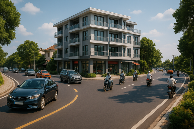Khoảng cách từ cửa nhà đến mép đường: Nếu có khoảng sân, vỉa hè, lề đường rộng, cây xanh… thì như có thêm “vùng đệm”, giảm bớt cảm giác bị đường “ép” sát mặt. Cửa nhà mở ra là chạm ngay lòng đường, xe chạy sát cửa, chắc chắn sẽ căng thẳng hơn.
