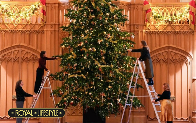 Mỗi mùa Giáng sinh, lâu đài Windsor, nơi ở quen thuộc của Hoàng gia Anh lại biến thành một “xứ cổ tích” giữa đời thực. Năm nay, những bức ảnh trang trí vừa được hé lộ khiến ai xem cũng muốn xách vali tới ngay: Một cây thông Nordmann Fir cao gần 20 feet (khoảng 6 mét) đứng sừng sững giữa St George’s Hall, hàng ngàn bóng đèn nhỏ tỏa sáng, những dải hoa và vòng lá được treo dọc ban công, chưa kể căn phòng Crimson Drawing Room đỏ thẫm, rực rỡ với cây thông cao hơn 4 mét.