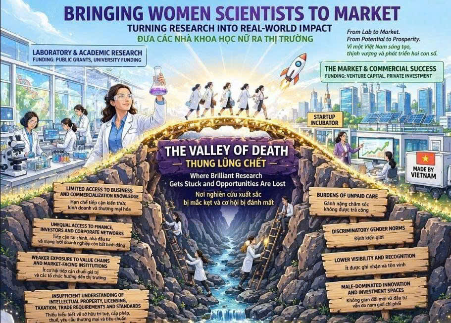 Đáng chú ý, hiện nay Việt Nam vẫn chưa hình thành một hệ sinh thái hoàn chỉnh nhằm hỗ trợ quá trình thương mại hóa dành riêng cho các nhà khoa học nữ. Khoảng trống này đặt ra yêu cầu cấp thiết về việc học hỏi kinh nghiệm quốc tế, đồng thời xây dựng các mô hình phù hợp với điều kiện trong nước.