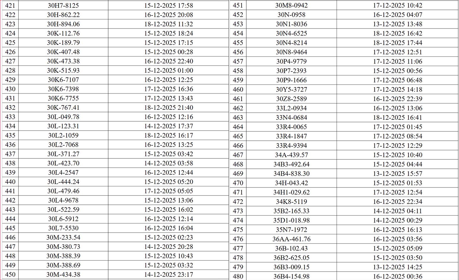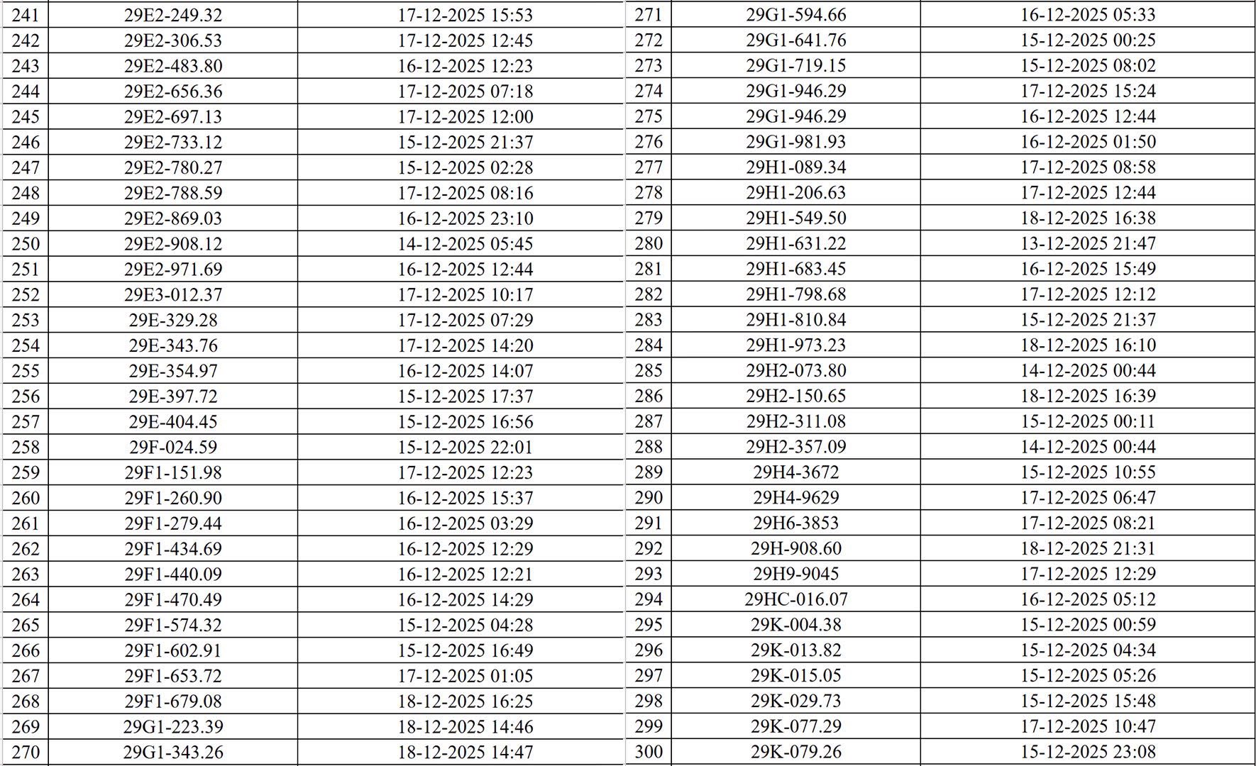 Công an Thành phố Hà Nội vừa công bố danh sách phương tiện vi phạm TTATGT được phát hiện qua hệ thống camera AI.