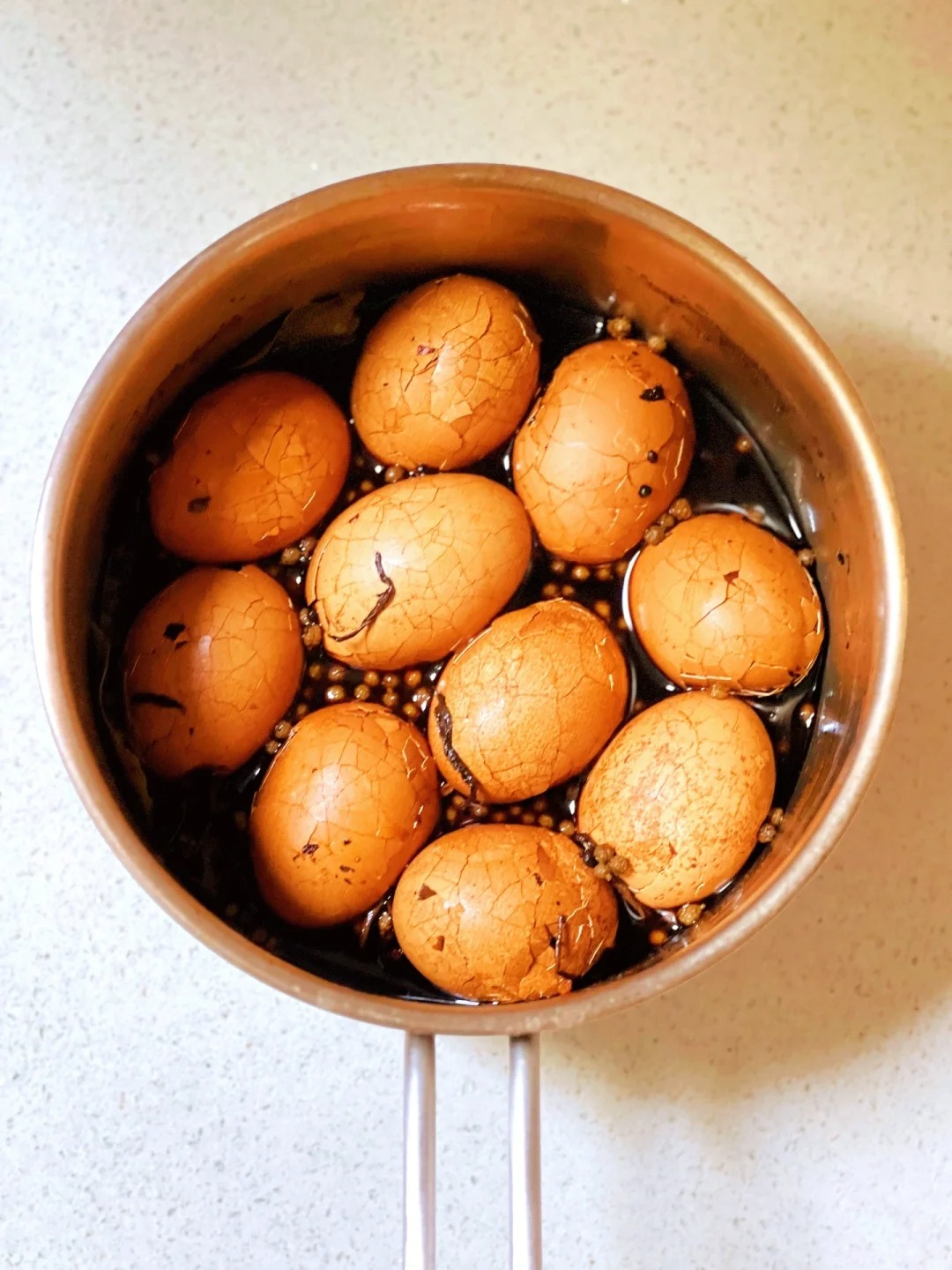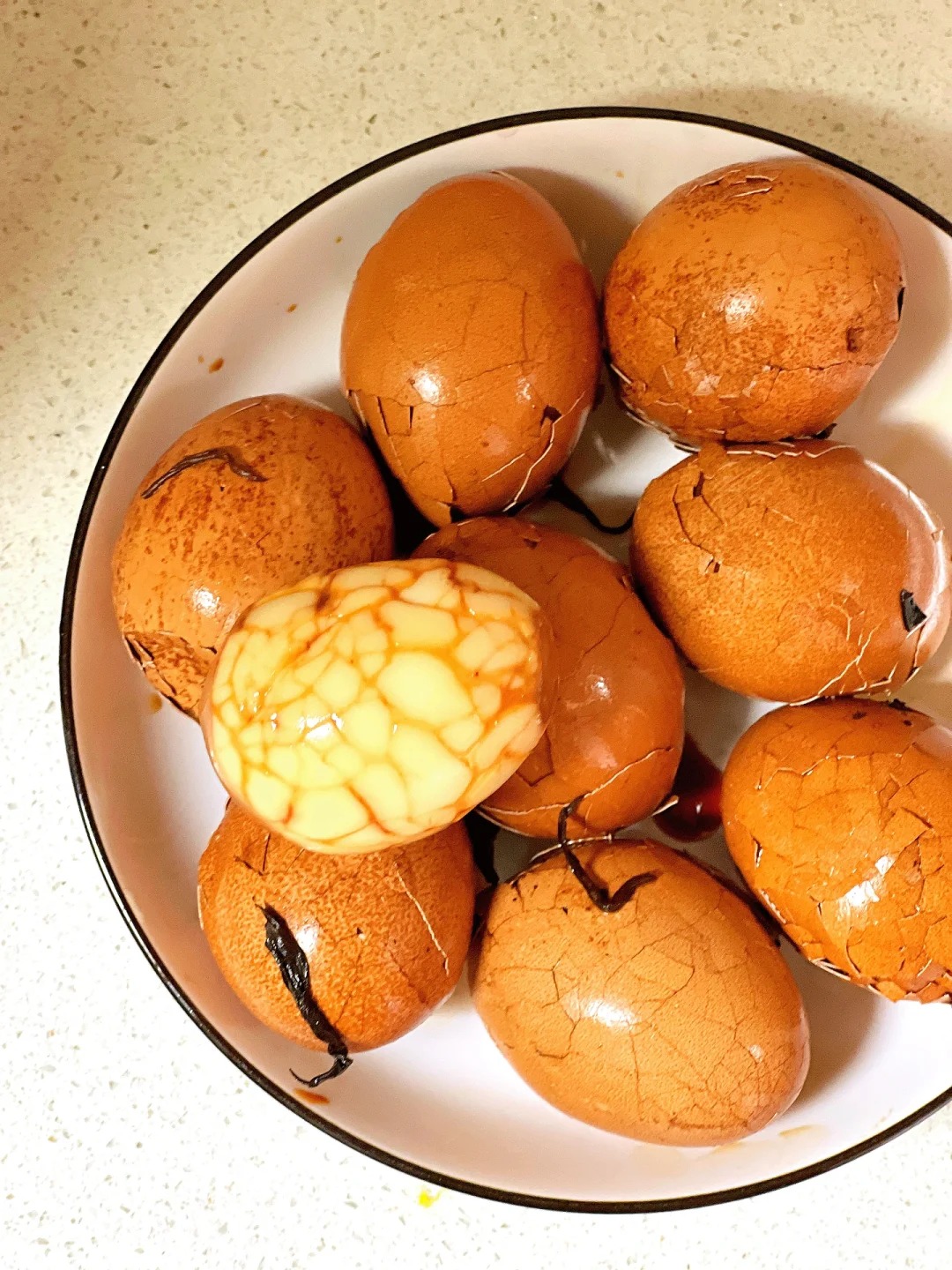 Chuyện là tối hôm kia rảnh rỗi, tôi nổi hứng lăn vào bếp làm một nồi trứng ngâm trà để thay đổi khẩu vị cho bữa sáng của cả nhà. Sáng hôm sau, tôi tiện tay mang vài quả đến văn phòng ăn lót dạ. Ngờ đâu, vừa bóc lớp vỏ nứt nẻ ra, mùi thơm thoang thoảng của trà quyện với quế hồi đã làm mấy chị em đồng nghiệp xúm lại. Đến khi chia mỗi người nếm thử một góc, ai nấy đều tròn mắt ngạc nhiên rồi thi nhau "truy lùng" công thức.