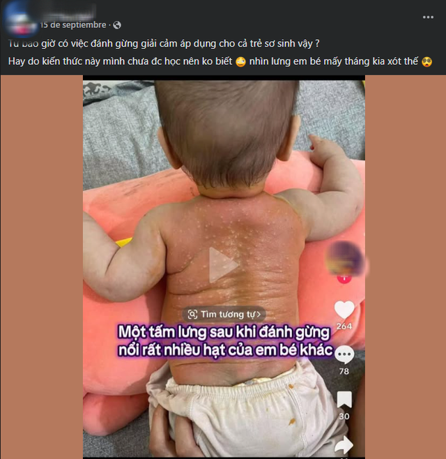 Nhưng thực tế thì đã có những em bé gặp tình trạng về da sau khi bị đánh gừng xuyên khung.