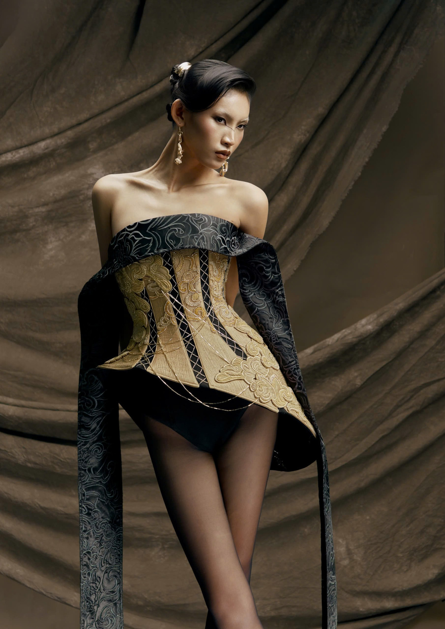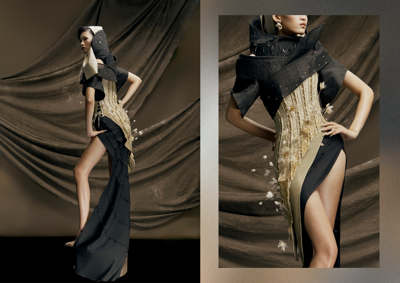 Cô gái 22 tuổi cho biết bộ sưu tập tốt nghiệp mang tên "Chiêu Vân" - có nghĩa làn mây được ánh sáng chiếu rọi, lấy cảm hứng từ lăng Khải Định ở Huế.