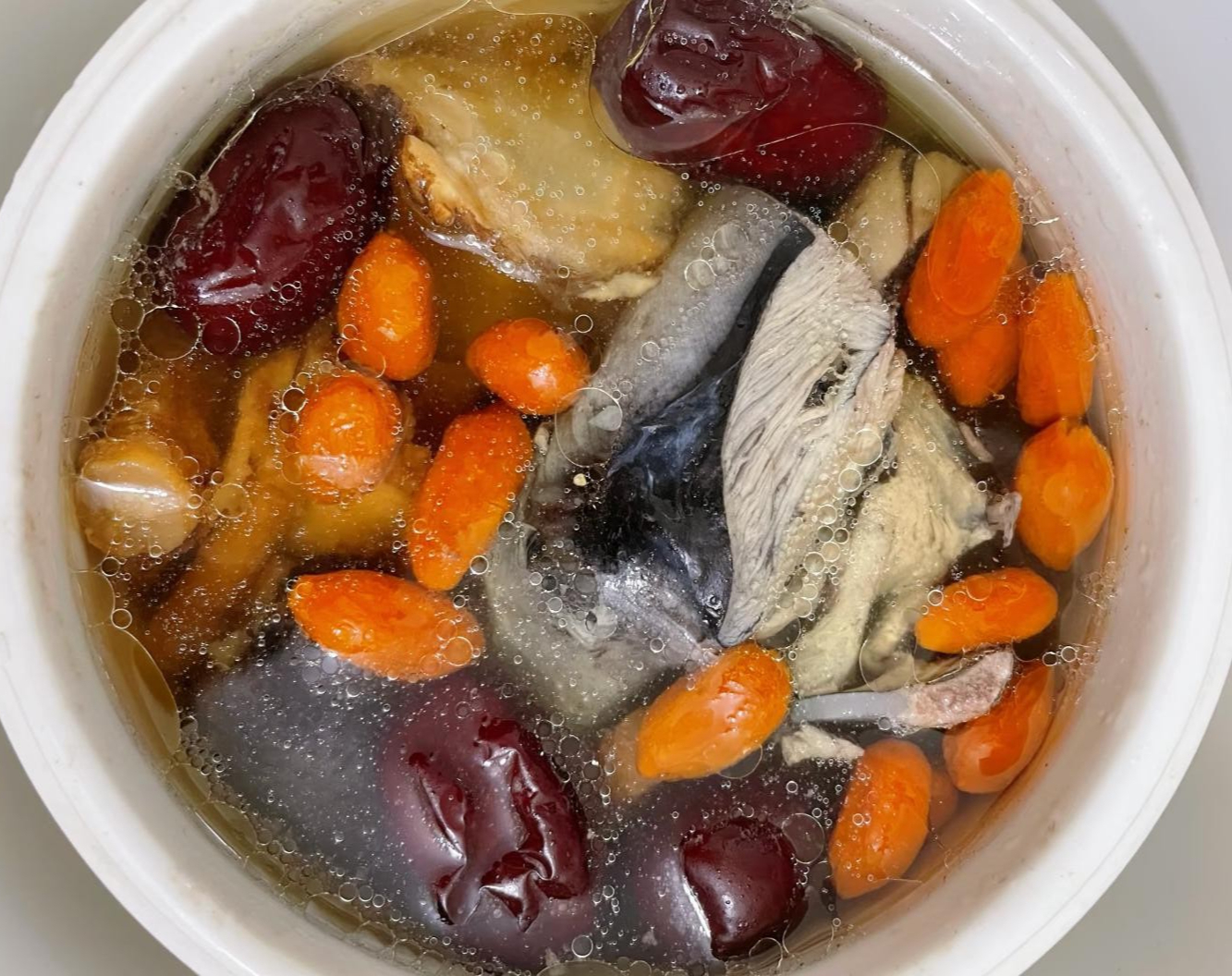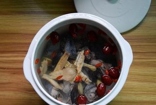 Bước 2: Cho thịt gà, đương quy, hoàng kỳ và các lát gừng còn lại, táo đỏ, kỷ tử vào nồi sứ. Tiếp theo thêm lượng nước ấm vừa đủ dùng vào nồi. Lưu ý bạn nên thêm nước đủ dùng ngay từ đầu, không được thêm trong quá trình nấu. Đặt nồi lên bếp, đun sôi ở lửa lớn sau đó giảm xuống mức lửa nhỏ nhất và ninh trong khoảng 1 giờ để giữ lại toàn bộ chất dinh dưỡng.