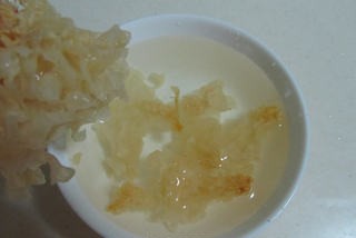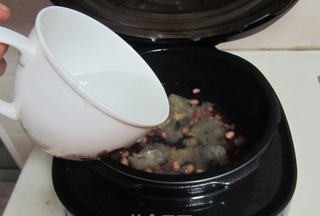 Bước 1: Ngâm nấm tuyết trong nước lạnh trước cho đến khi nở mềm. Sau đó bạn cắt bỏ rễ và xé nhỏ nấm tuyết. Ngâm đậu đỏ và lạc trong 2 tiếng trước khi nấu để rút ngắn thời gian hầm. Sau khi sơ chế tất cả các nguyên liệu xong thì cho vào nồi nấu chậm hoặc nồi áp suất, thêm lượng nước vừa đủ vào.