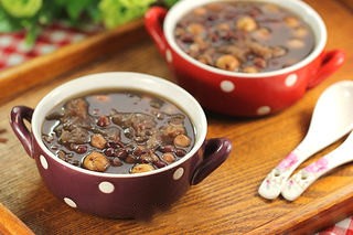 40g đậu đỏ, 30g lạc đỏ, nửa cây nấm tuyết khô, 4 quả táo đỏ và lượng nước vừa đủ. Món này có vị ngọt, mềm và phù hợp với mọi lứa tuổi.