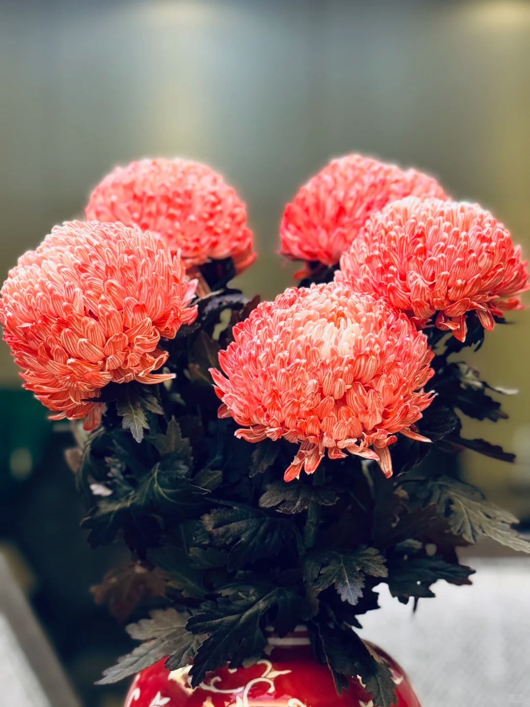 Có những bông lại mang sắc hồng pha nâu đỏ (màu mắm tôm - một cách gọi dân dã nhưng rất "nghệ" trong giới chơi hoa), hay màu cam san hô rực rỡ. Khi cắm những bông hoa này vào chiếc bình gốm đỏ họa tiết trắng hoặc bình gốm xanh lam truyền thống, không gian bỗng trở nên ấm sực, xua tan đi cái lạnh se sắt của những ngày cuối đông. Sự hiện diện của chúng như một lời khẳng định về một năm mới may mắn, phát tài và tràn đầy năng lượng tích cực.