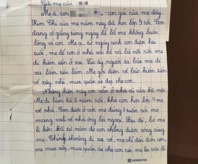 Lá thư được viết bằng nét chữ non nớt của một đứa trẻ lớp 5. Câu chữ còn vụng, chính tả chưa hoàn chỉnh, nhưng cảm xúc thì không thiếu một giọt nào. Con bé không trách mẹ, cũng không oán hận. Con bé chỉ kể lại cuộc đời mình bằng giọng điệu bình thản đến đau lòng. Rằng mẹ đi làm xa từ khi con còn rất nhỏ, hứa hẹn nhiều điều, rồi những năm tháng trôi qua, con vẫn lớn lên ở một nơi không có mẹ.