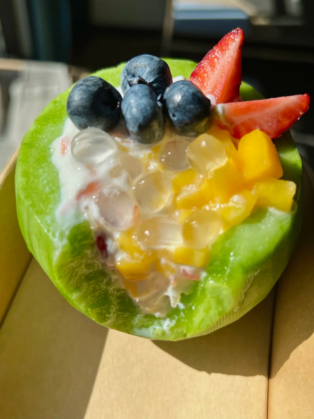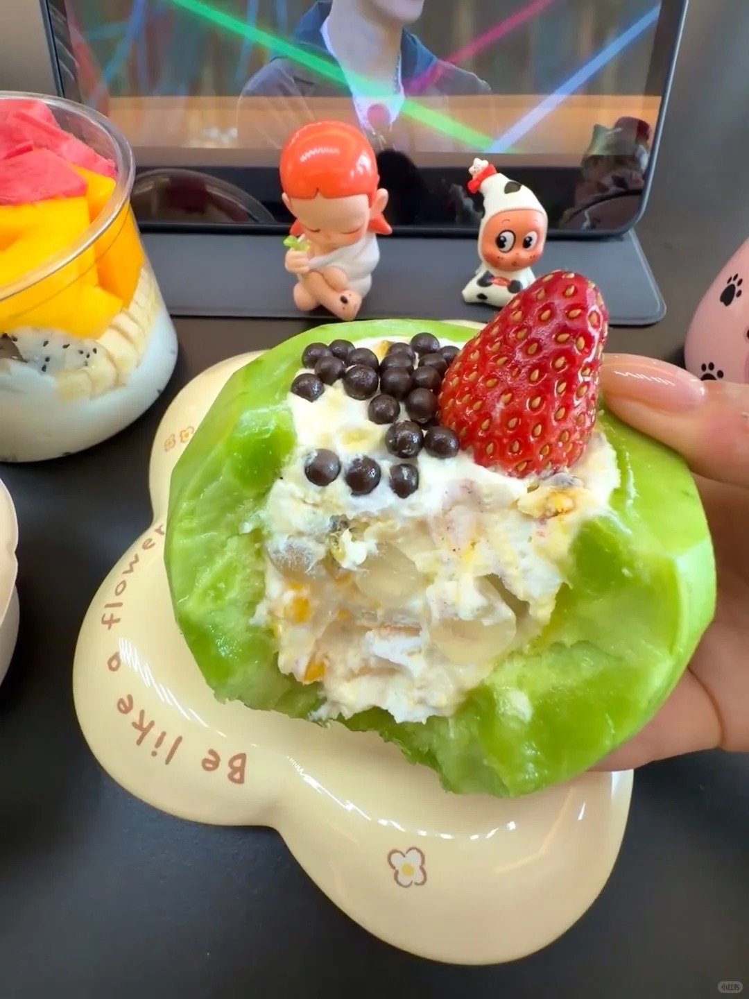 Chính sự "phức tạp trong sự đơn giản" này khiến người ta ăn hoài không chán, cảm giác như đang thưởng thức một món bánh ngọt cao cấp chứ không đơn thuần là ăn hoa quả dầm. Hơn nữa, với hội chị em yêu cái đẹp, màu xanh ngọc bích của vỏ dưa kết hợp với màu trắng ngà của sữa, điểm xuyết thêm vài quả dâu đỏ mọng bên trên thực sự là một "bối cảnh" hoàn hảo cho những bức ảnh sống ảo nghìn like.