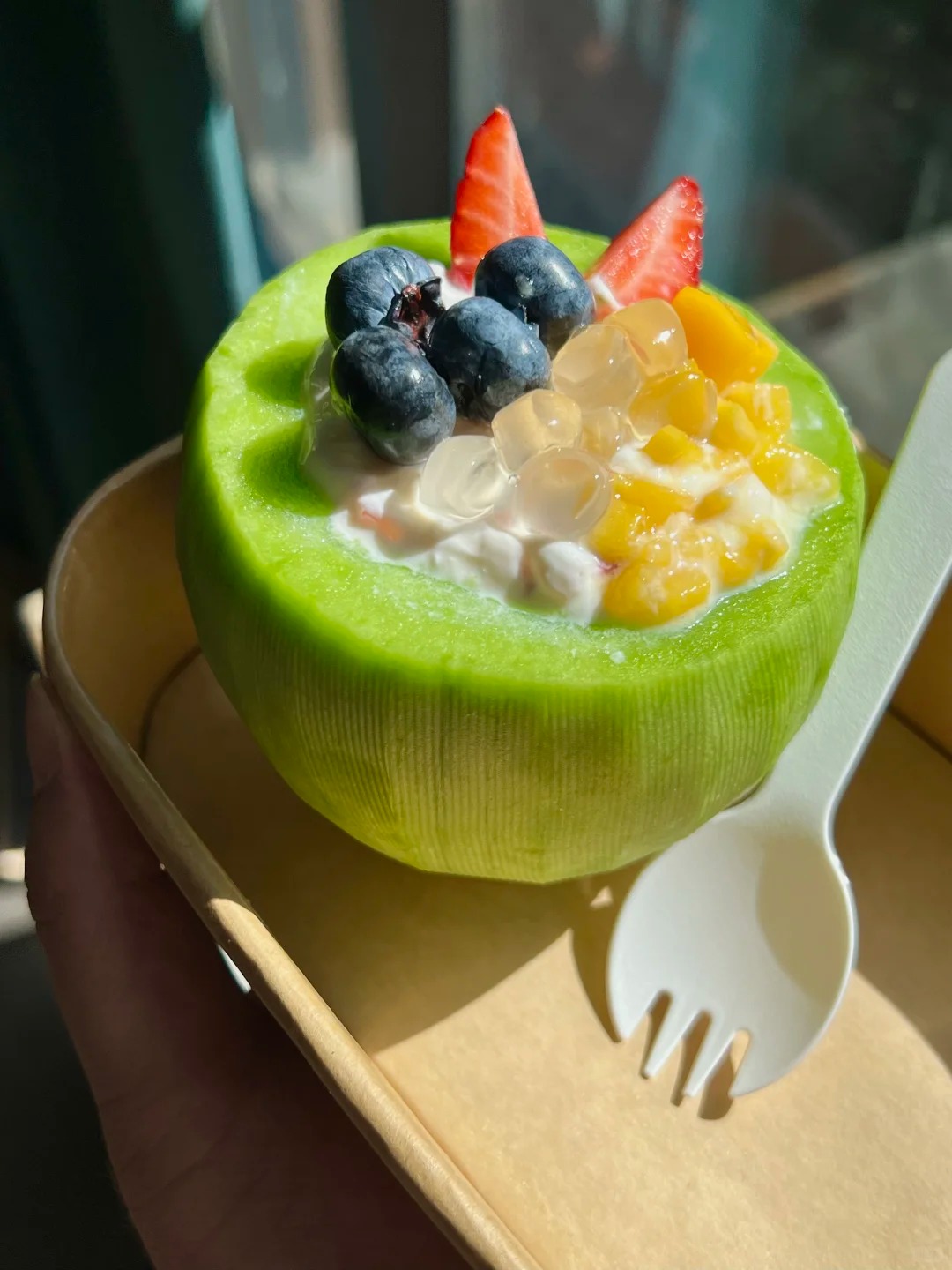 Cảm giác cầm trên tay một trái dưa lê tròn trịa, xanh mướt như viên ngọc, bên trong ăm ắp những tầng hương vị, thực sự mang lại một niềm vui rất "chill". Không còn là lớp vỏ nhựa vô tri, chính phần vỏ và thịt quả dưa lê đã trở thành chiếc bát đựng tự nhiên, thân thiện và đầy cảm hứng.