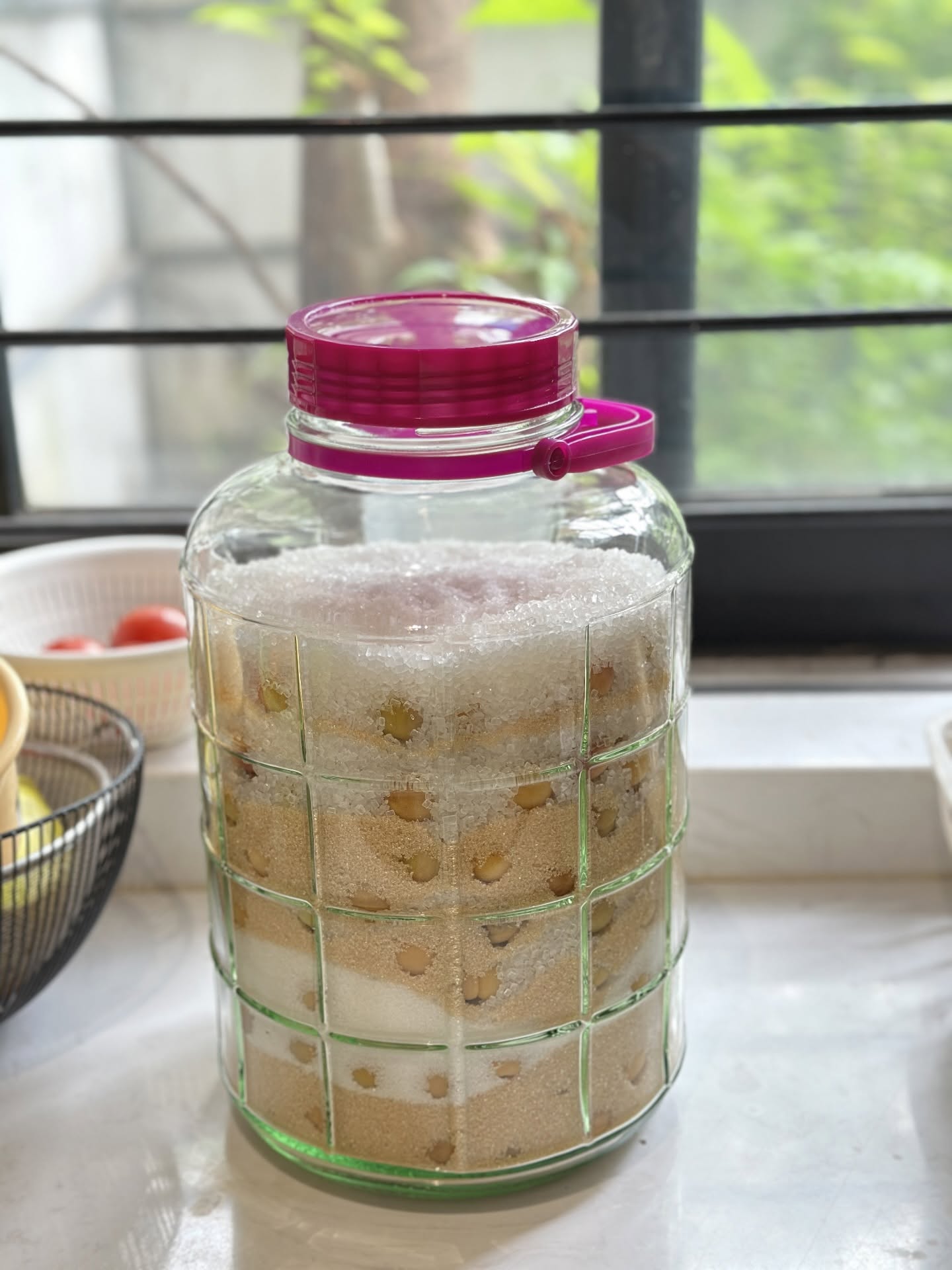 - 1kg đường phèn vàng (nếu gia đình bạn hảo ngọt, hãy dạn dĩ tăng lên tỷ lệ 1-1, tức là 1.2kg đường nhé).