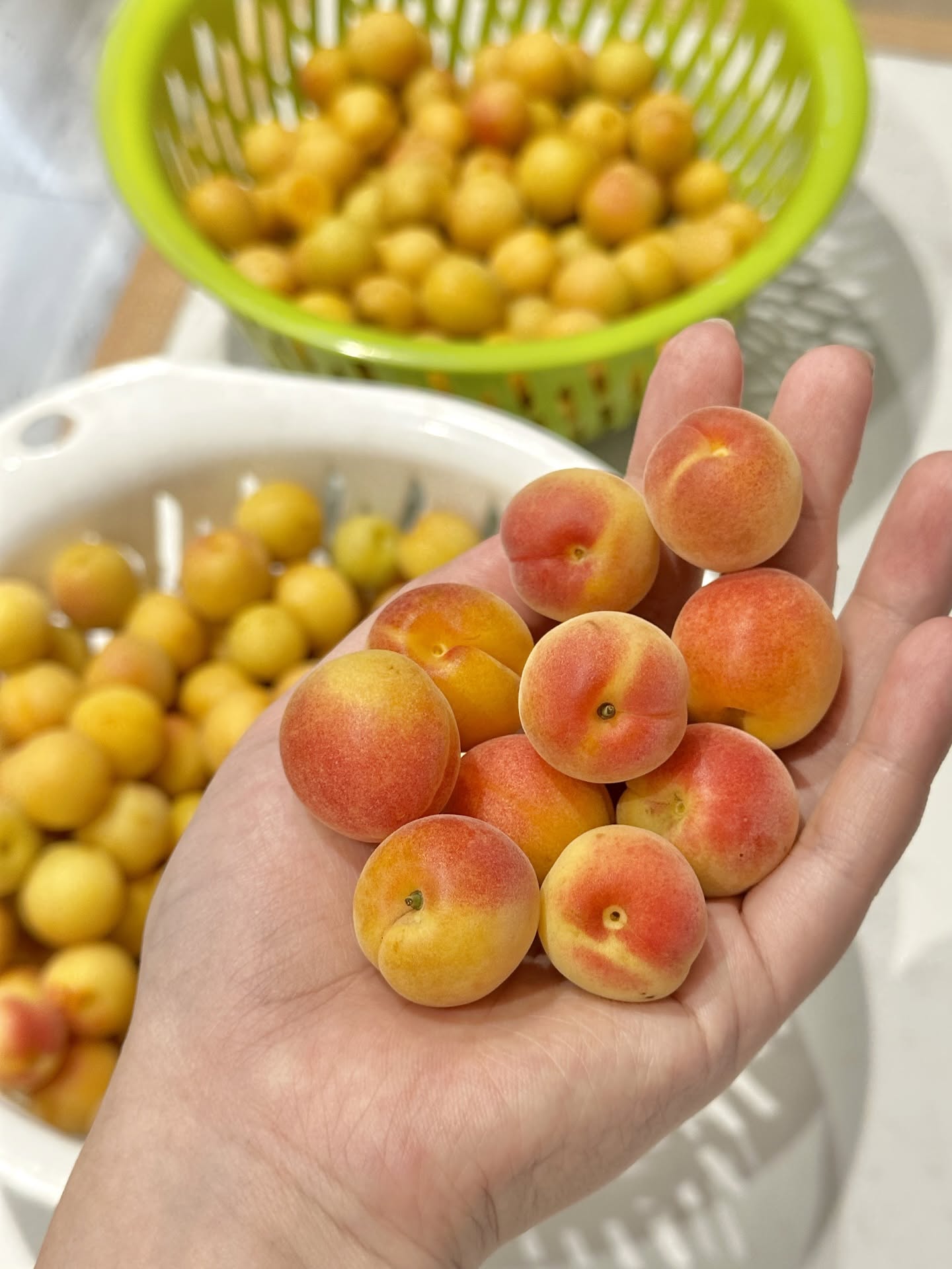 Hành trình bắt đầu bằng việc làm sạch những quả mơ bé xinh. Bạn rửa mơ thật nhẹ tay dưới vòi nước chảy để trôi đi lớp bụi bẩn, sau đó pha một chậu nước muối loãng và ngâm mơ trong khoảng 15 phút. Bước ngâm muối này không chỉ giúp làm sạch sâu lớp lông tơ mà còn khử đi phần nào nhựa chát ở vỏ.