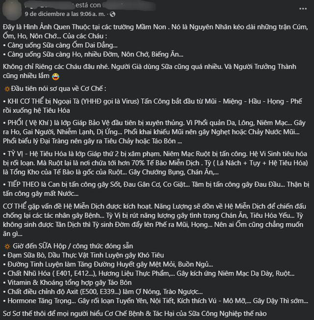 Thông tin “sữa công nghiệp” không tốt đang được nhiều người đưa ra gần đây là hoàn toàn cảm tính.