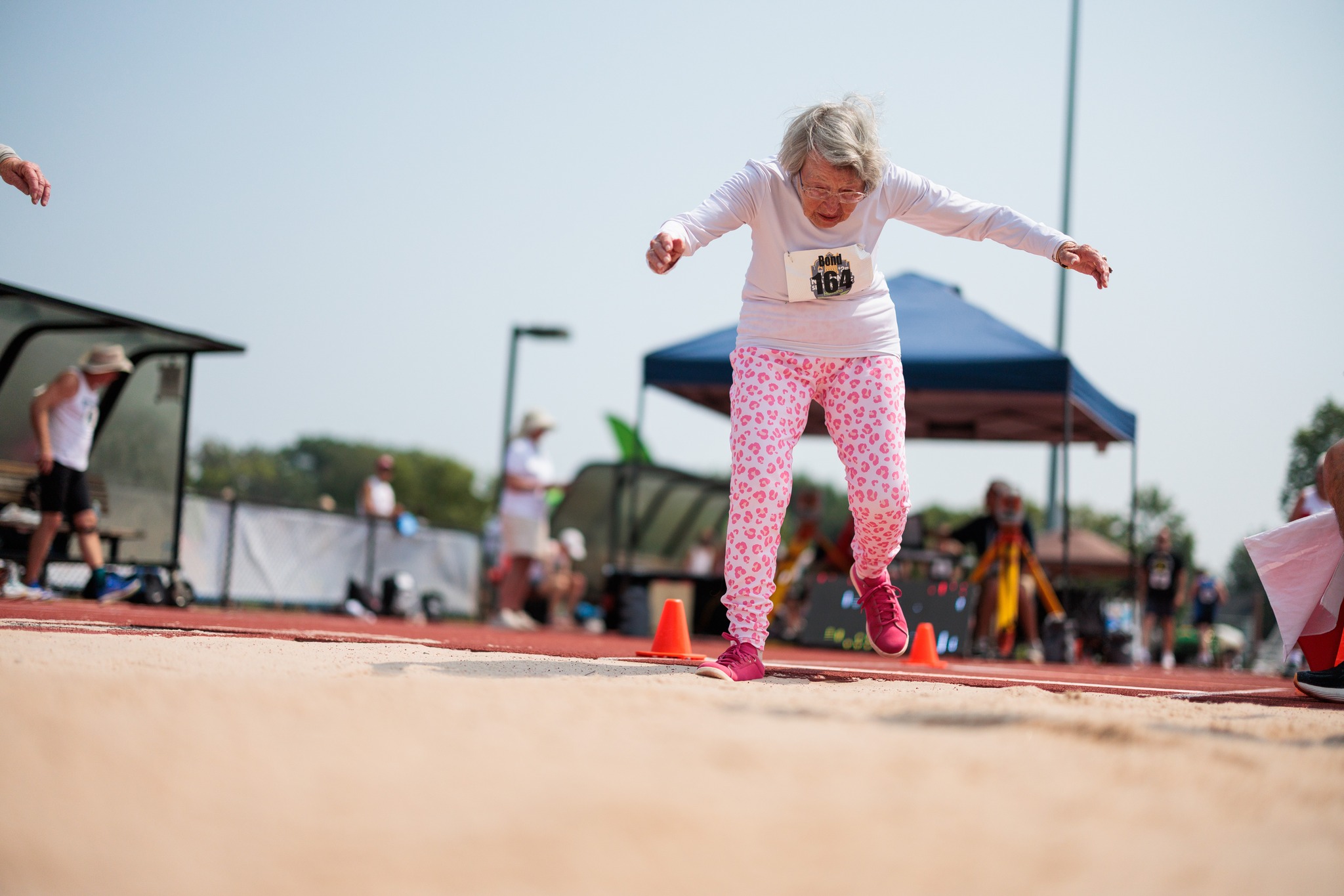 Năm nay, đại hội quy tụ hơn 12.400 vận động viên, độ tuổi từ 50 đến 105, nhưng Fay Bond là vận động viên lớn tuổi nhất và cũng là người duy nhất trong nhóm nữ 100-104 tuổi thi đấu cùng lúc ba nội dung điền kinh. Không chỉ tham gia cho có mặt, bà còn thi đấu nghiêm túc, tự tin và giành huy chương.