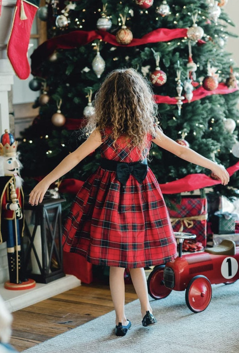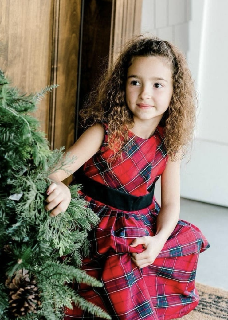 Với các mẹ Việt, không nhất thiết phải săn đúng chiếc váy như của Lilibet mới tạo được “không khí hoàng gia” cho bé. Chỉ cần chọn một chiếc váy caro đỏ hoặc xanh, chất liệu dày dặn một chút, dáng xòe hoặc chữ A đơn giản, thêm chiếc nơ nhỏ ở eo, kết hợp tất len và giày búp bê là bé đã có bộ đồ Noel xinh xắn.