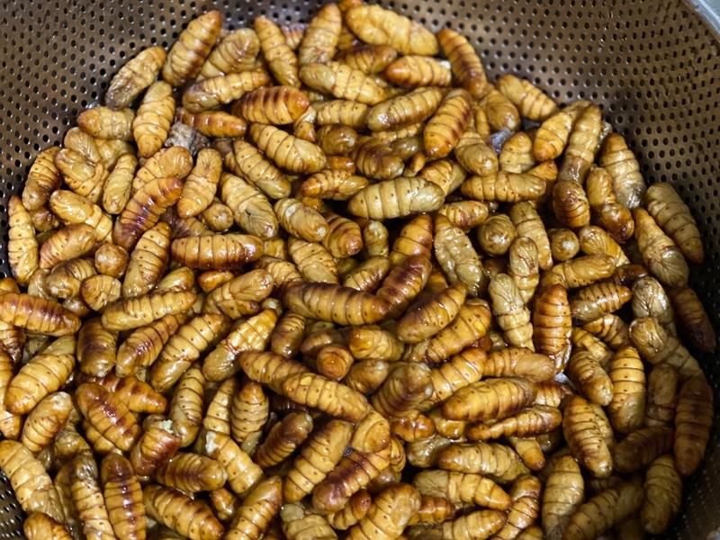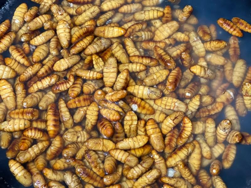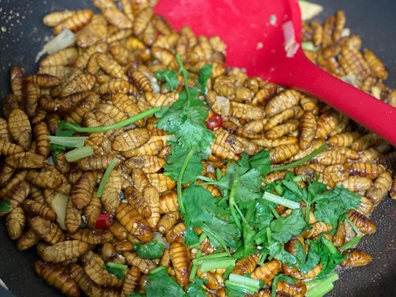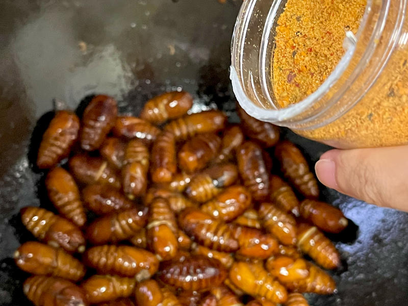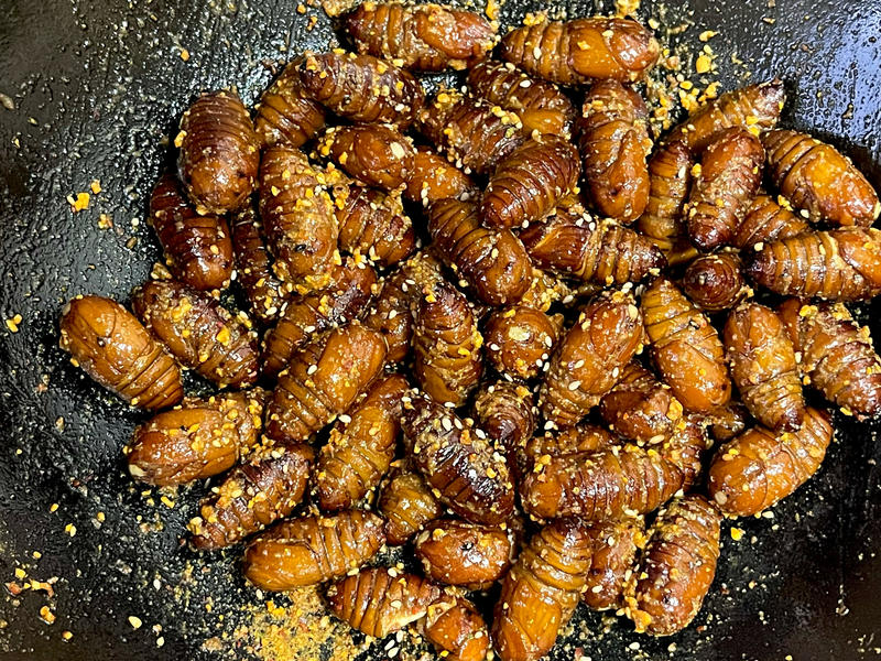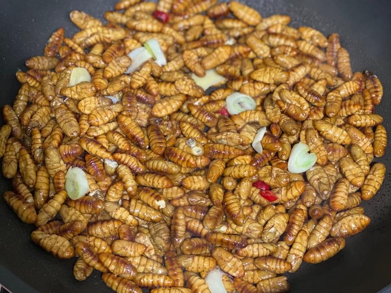 1. Nhộng tằm - Nhộng tằm xào cay: Giòn, ngon và rất thơm
