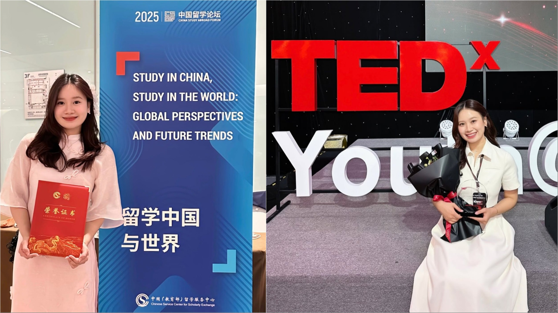 | Cô từng theo học THPT chuyên Lào Cai, sau đó du học tại Đại học Nam Kinh (Trung Quốc) trước khi trúng tuyển hệ Thạc sĩ của Đại học Thanh Hoa (Trung Quốc) (Ảnh: FBNV) |