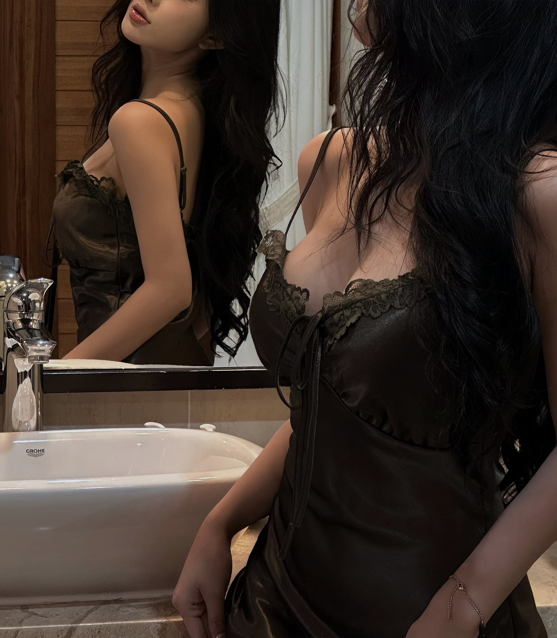 Đáng chú ý là chi tiết dây áo mỏng manh, hờ hững rơi trên vai, không chỉ tạo nên vẻ quyến rũ khó cưỡng mà còn khéo léo khoe trọn vòng 1 đầy đặn và xương quai xanh gợi cảm. Body "đồng hồ cát" trứ danh cũng chiếc đầm ôm sát đã thực hiện tốt nhiệm vụ "điêu khắc" đường cong, khiến ai nhìn vào cũng phải trầm trồ.