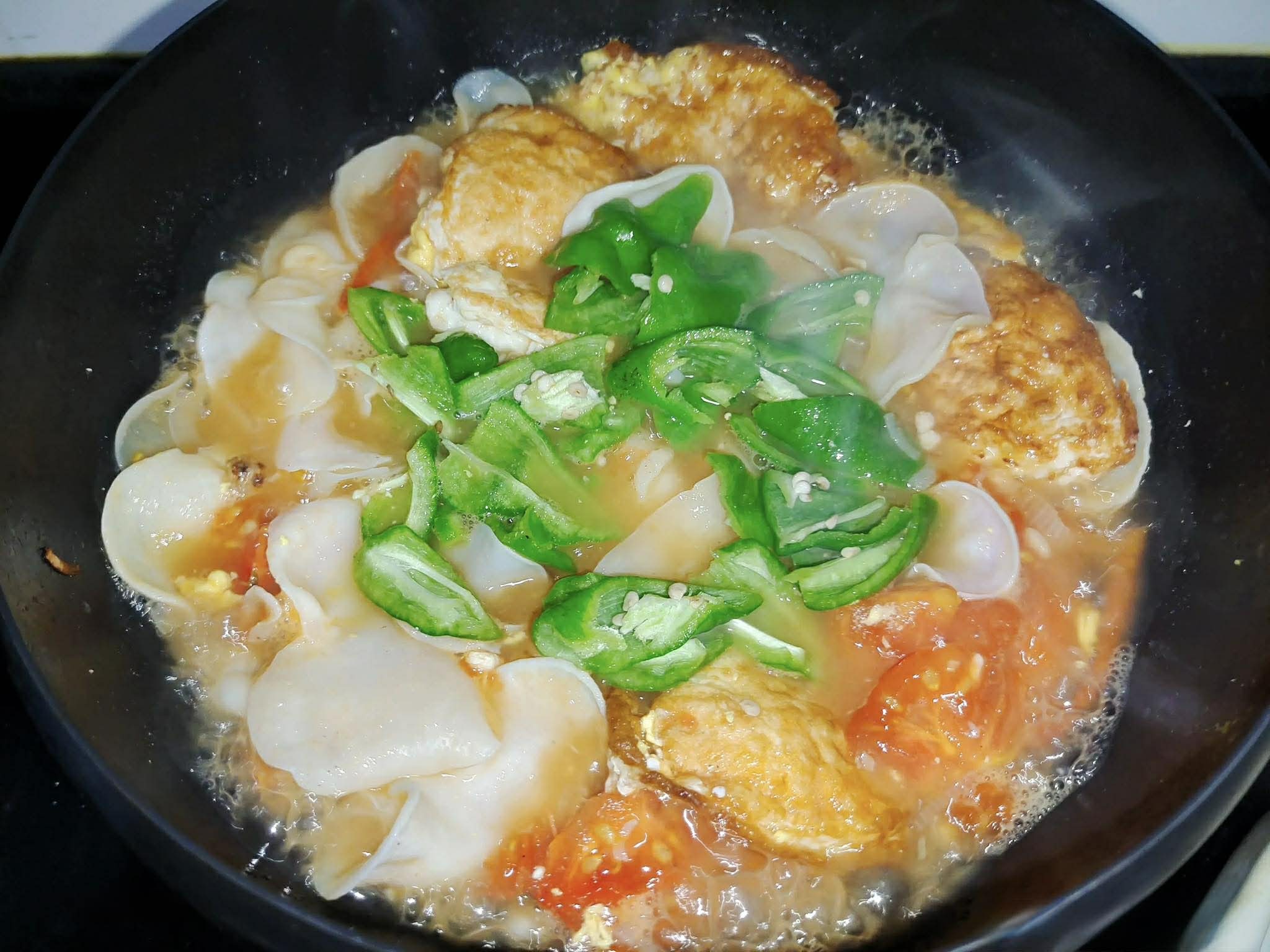 Bước 5: Cuối cùng, cho ớt ngọt xanh vào nồi. Trong lúc đó, pha loãng một ít bột bắp với nước lạnh thành hỗn hợp sệt, khuấy đều rồi đổ vào nồi. Đun lửa lớn và dùng thìa khuấy liên tục cho đến khi thấy nước dùng hơi sánh lại. Lưu ý bạn không nên cho quá nhiều bột bắp vì sẽ khiến kết cấu nước dùng đặc. Nếu không thích bạn cũng có thể không cần cho nước bột bắp vào. Sau đó bạn tắt bếp, lấy món canh ra thố sứ để giữ món ăn nóng lâu là có thể thưởng thức.