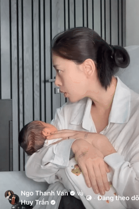 "Tháng đầu tiên người mẹ sẽ trải qua hành trình thiếu ngủ, hay quên và lo lắng nhiều, rối loạn hormon. 4 tuần đầu tiên rất quan trọng để mẹ bỉm có thể hồi phục bản thân, đề gọi sữa về, ổn định nguồn sữa, lấy lại tinh thần. 4 tuần đầu tiên này mà mẹ có bất kỳ sự lo âu hay rối loạn nào thì cũng ảnh hưởng tới sữa mẹ và việc nuôi con bằng sữa mẹ của các mẹ bỉm" - Ngô Thanh Vân chia sẻ.