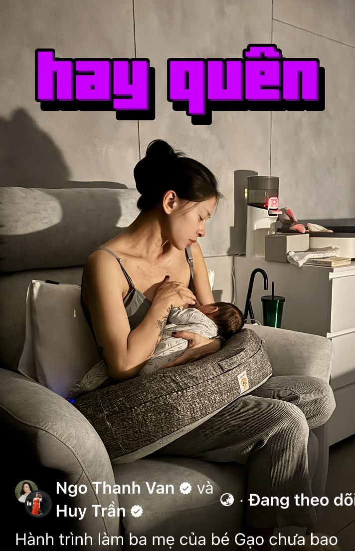 "Vân cảm thấy mình thậy sự may mắn khi có chồng mình - Huy Trần cùng đồng hành trong hành trình này. Hai vợ chồng hiểu rõ rằng nuôi con bằng sữa mẹ là hành trình nhiều thử thách. Vân cần sự kiên nhẫn và chăm chút từng chút một; còn Huy luôn cố gắng san sẻ: từ chăm con, làm việc nhà đến tìm giải pháp giúp Vân có thêm thời gian nghỉ ngơi.